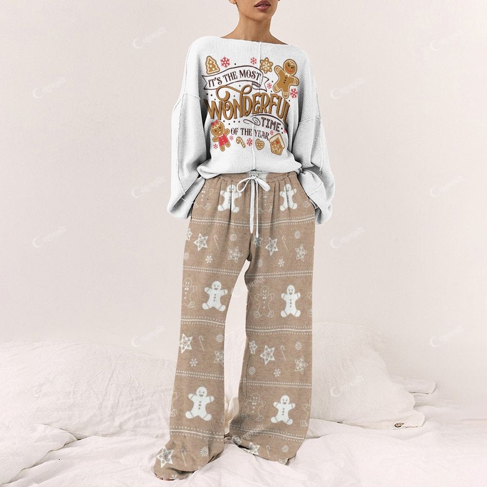 Gingerbread Wonderful Time Women's Long Sleeve Cotton Homewear Set
