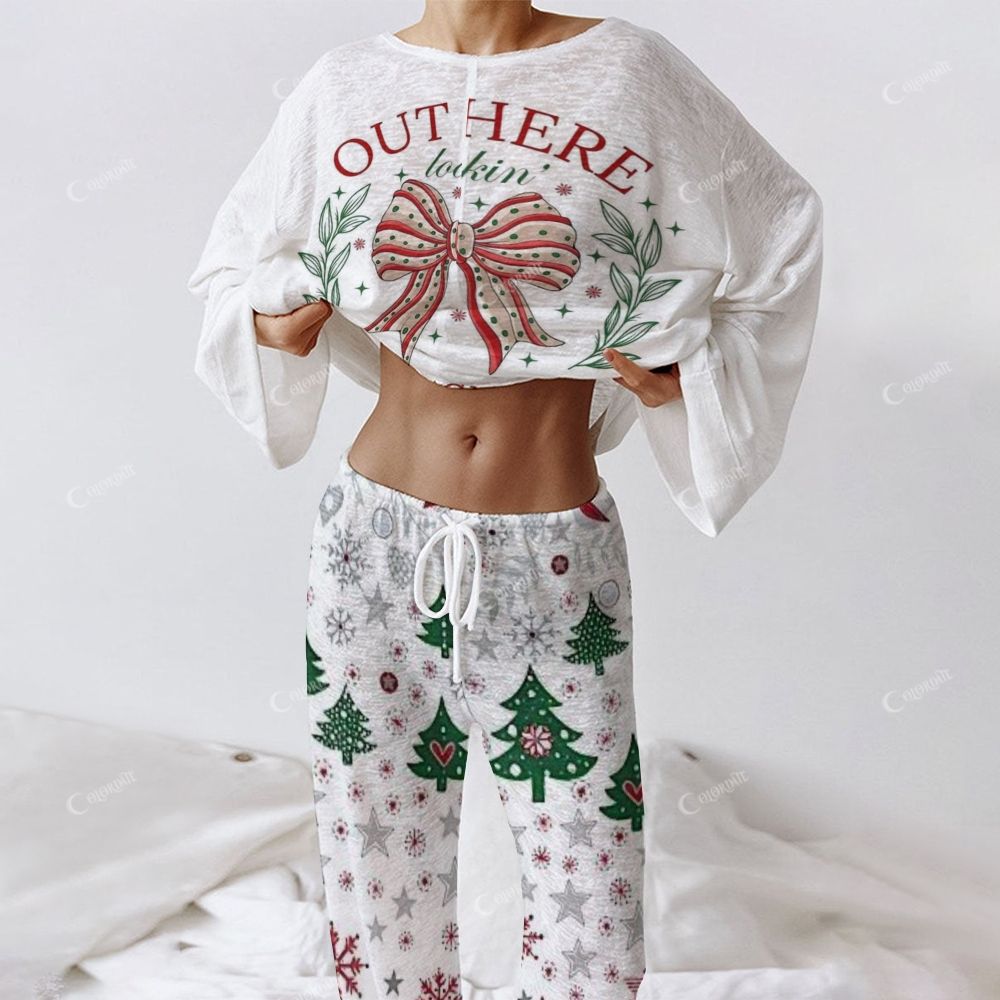 Out Here Bow Christmas Tree Women's Long Sleeve Cotton Homewear Set