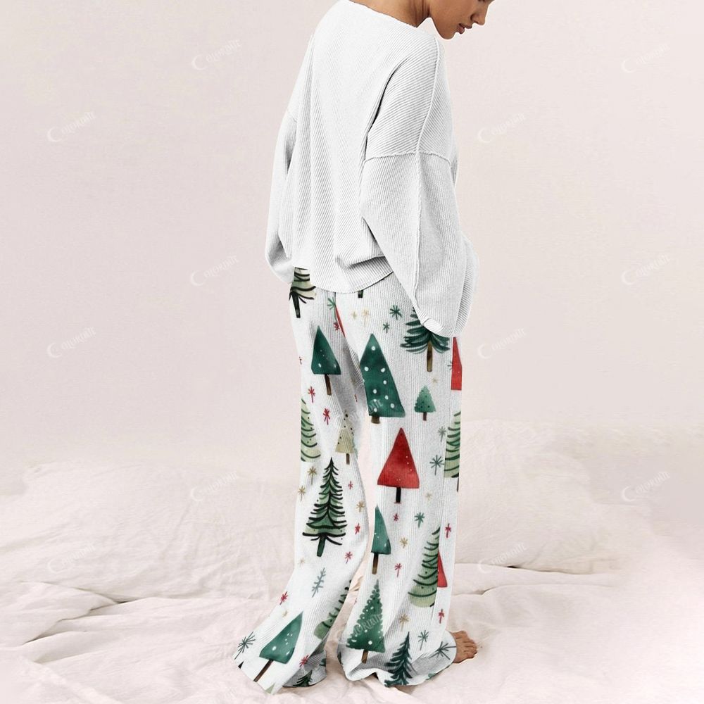 Christmas Tree Striped Women's Long Sleeve Cotton Homewear Set