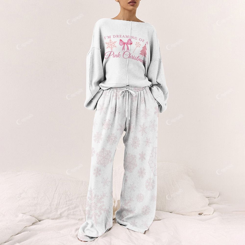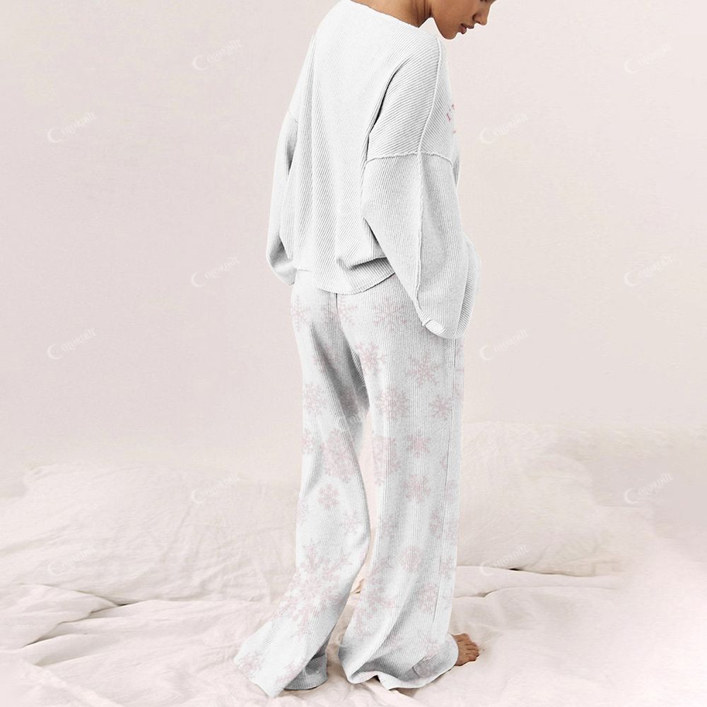 Pink Snowflake Women's Print Long Sleeve Pajama Set