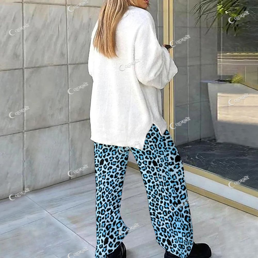 Blue Leopard Print Loungewear Set For Women