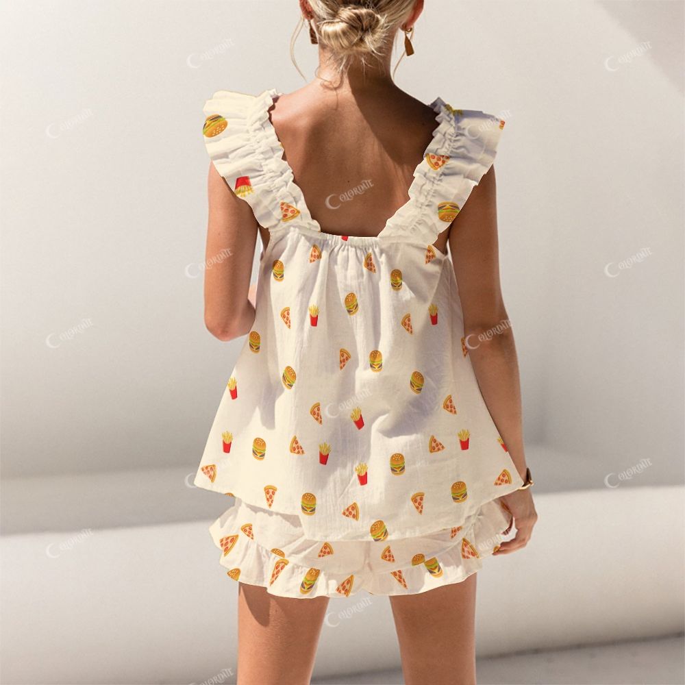 Colordate Hamburger And French Fries Print Short Tank Top Shorts Pajama Set