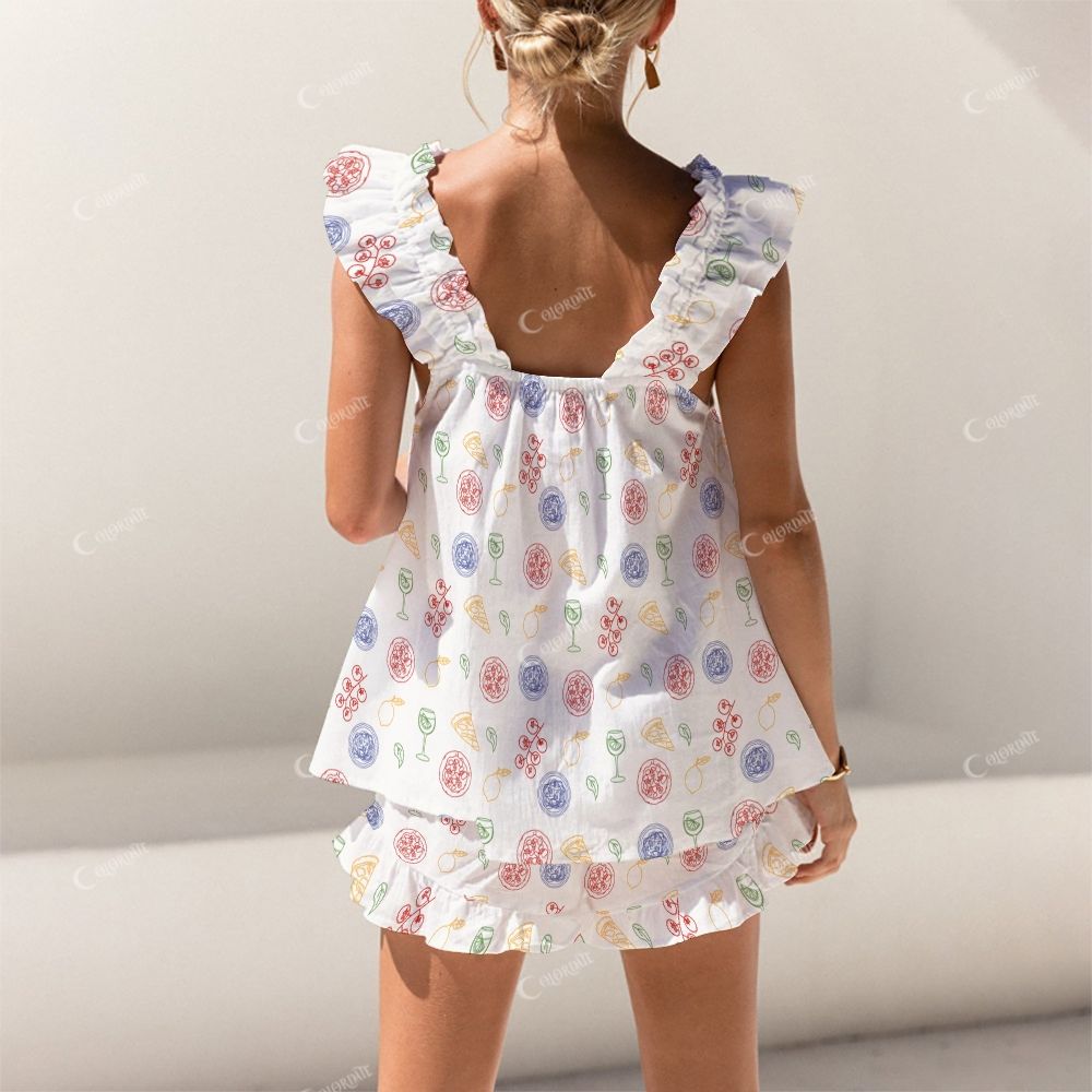 Colordate Pizza Print Short Tank Top Shorts Pajama Set
