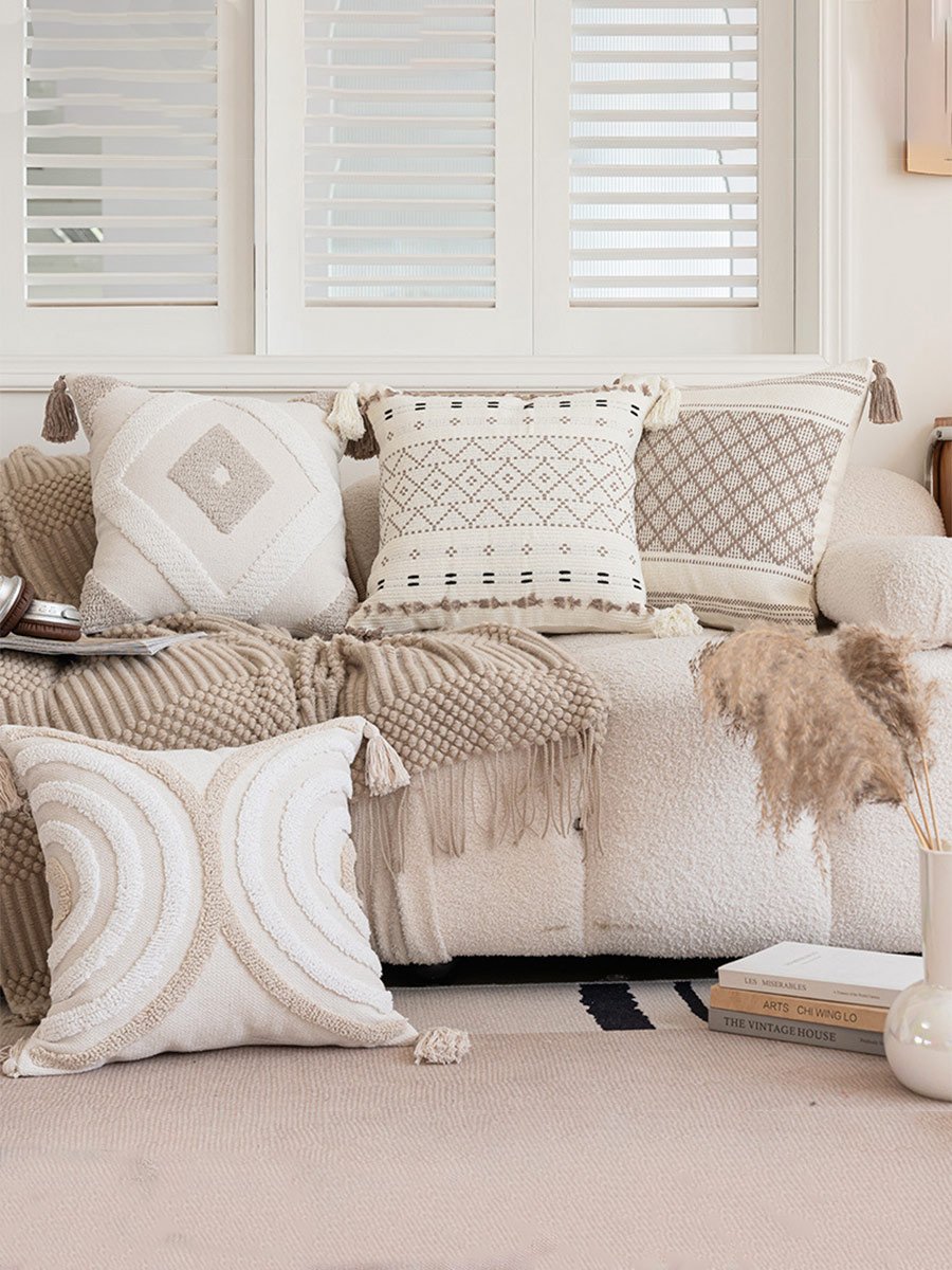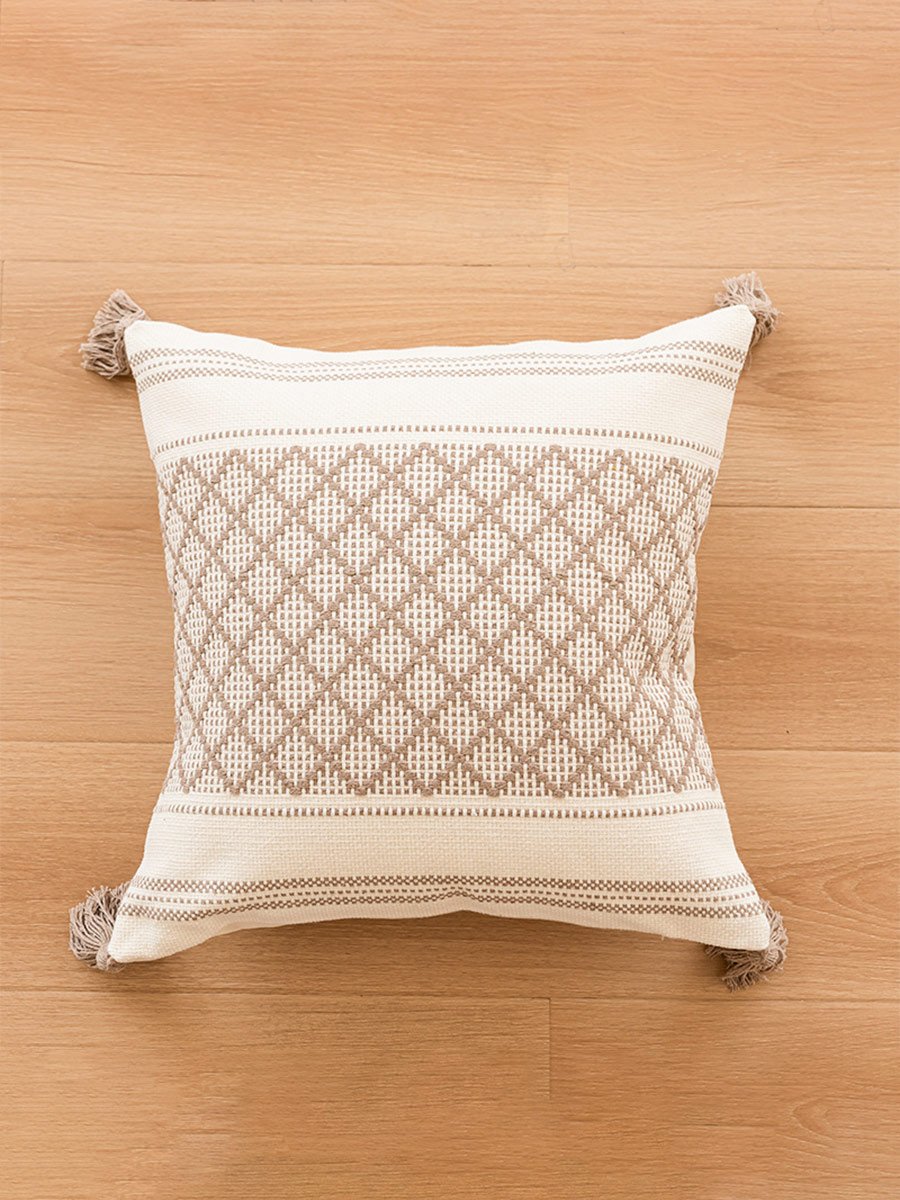 Home Tufted Small Checkered Tassel Pillow