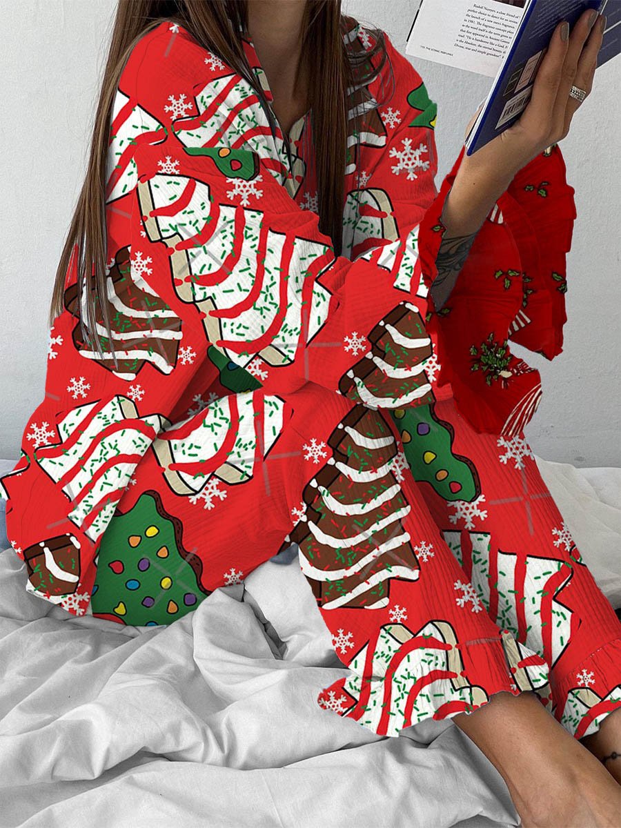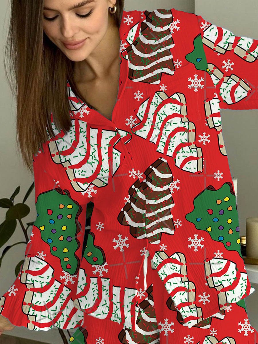 Ladies Christmas Tree Ice Cream Red Festive Pajama Set