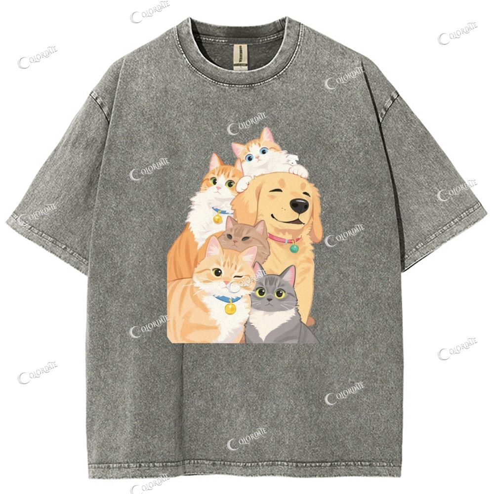 Unisex Cute Cat And Dog Printed Washed Tee
