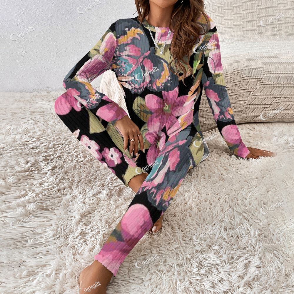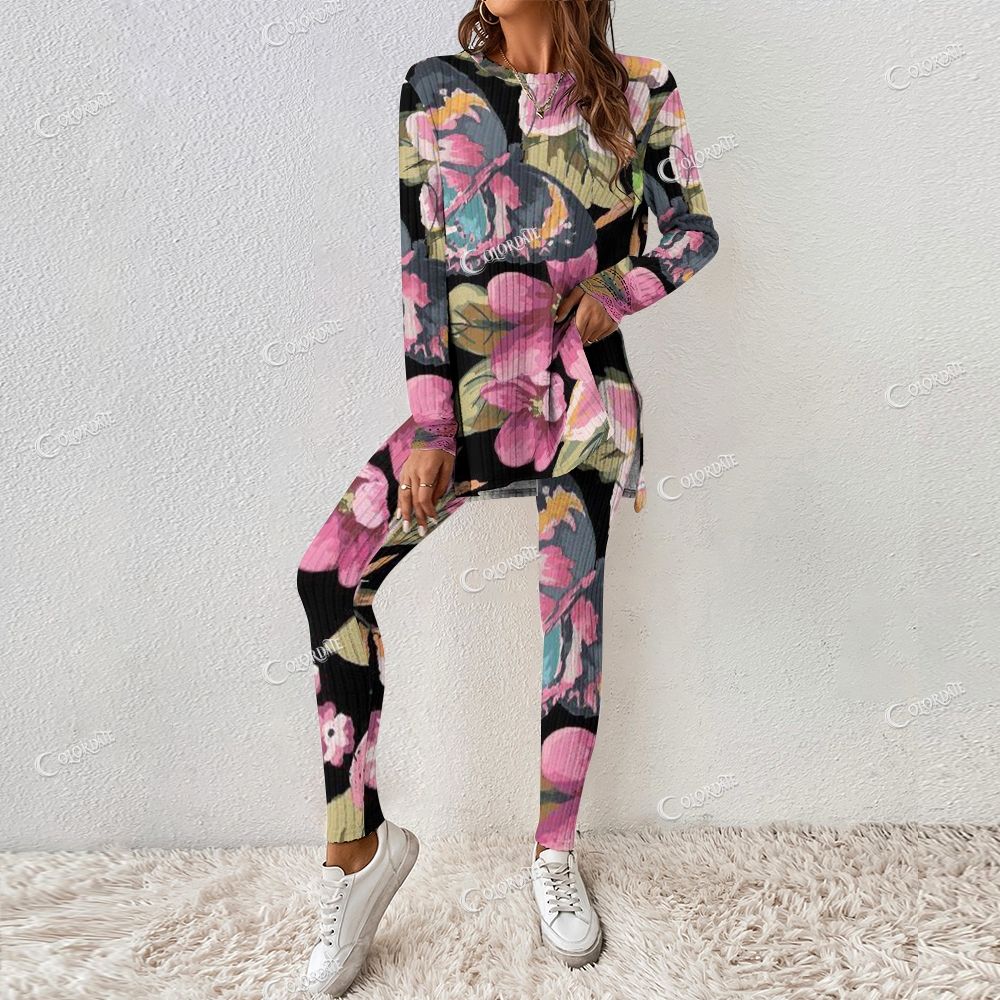 Women's Butterfly Floral Print Long Sleeve Suit