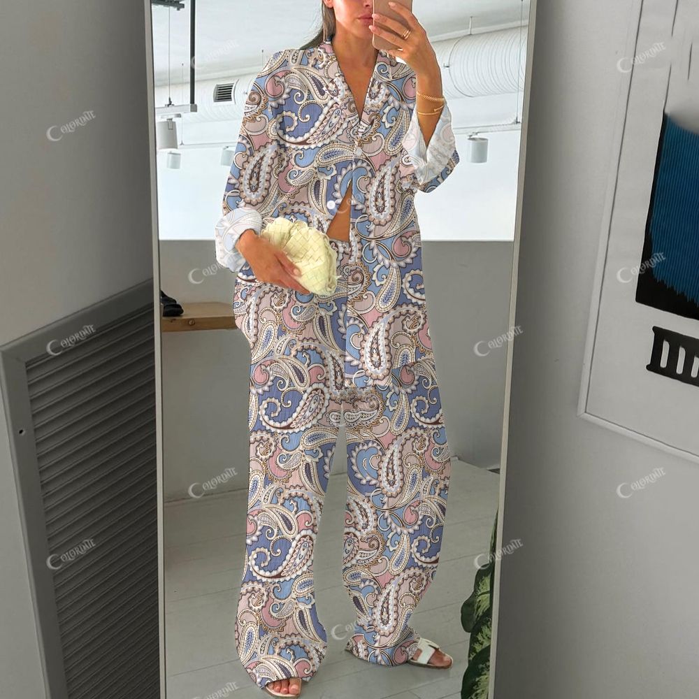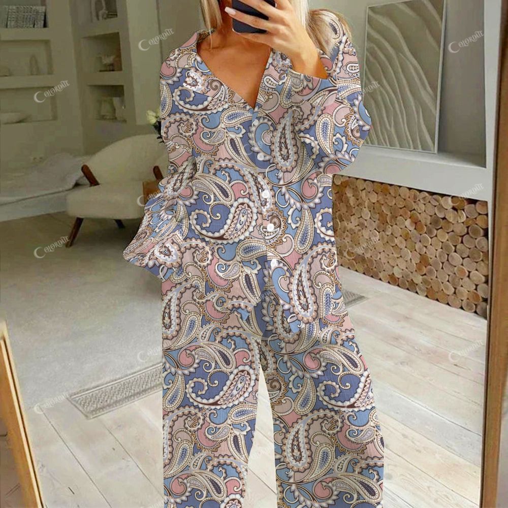 Women's Chic Retro Traditional Print Cotton Cardigan Homewear Set