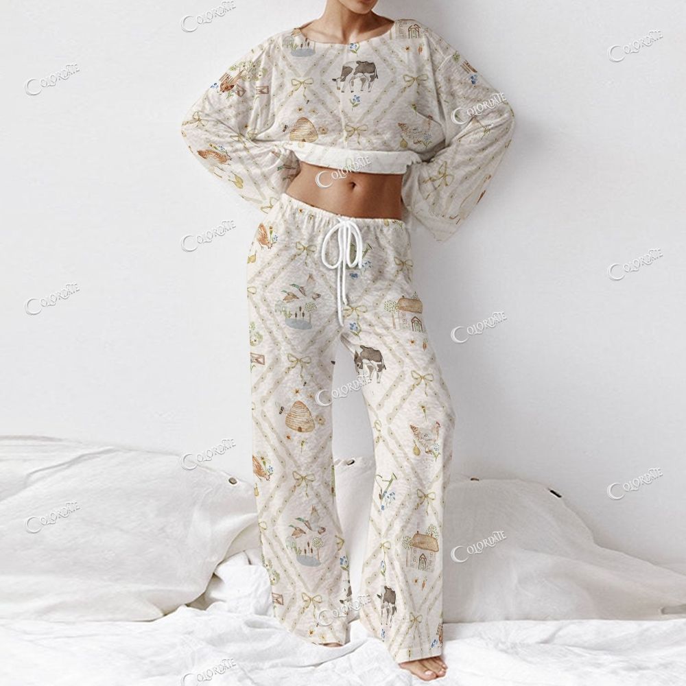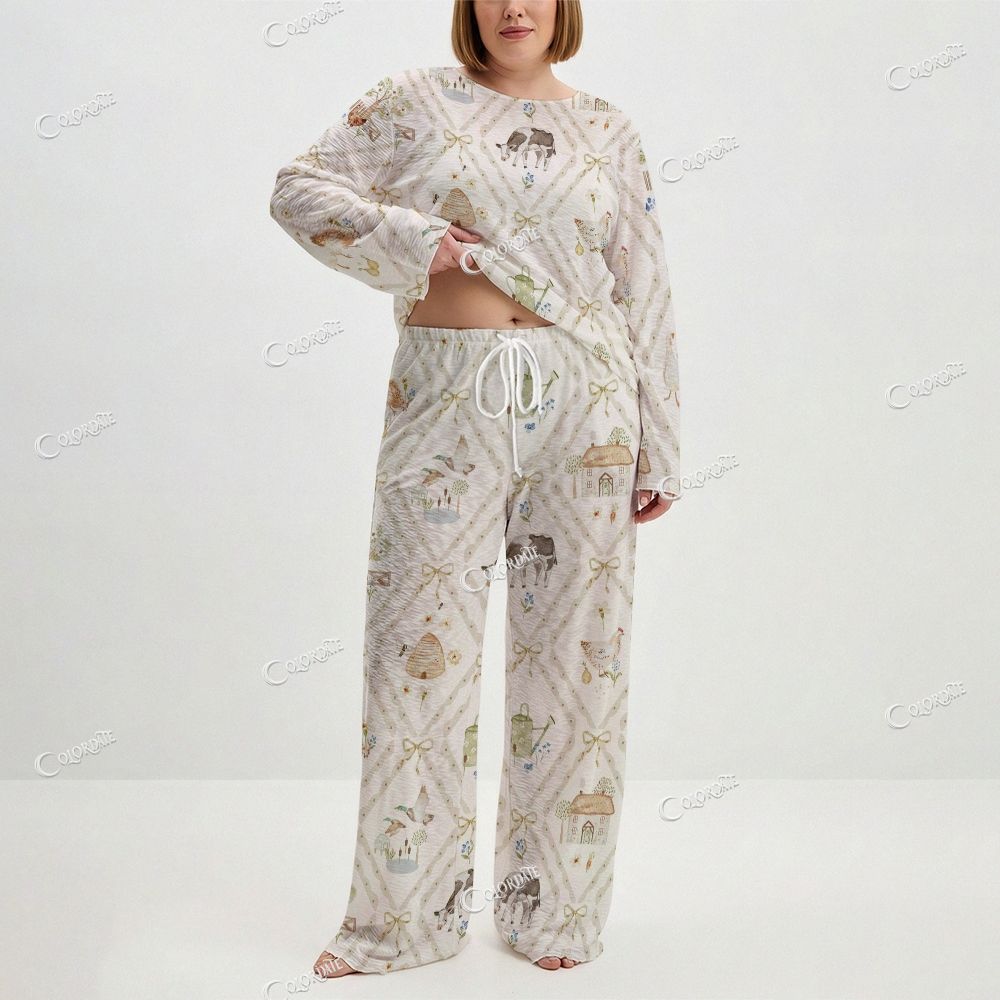Women's Farm Animal Print Long Sleeve Cotton Homewear Set
