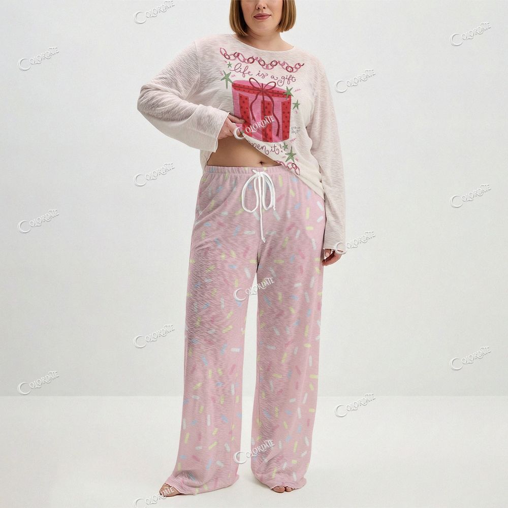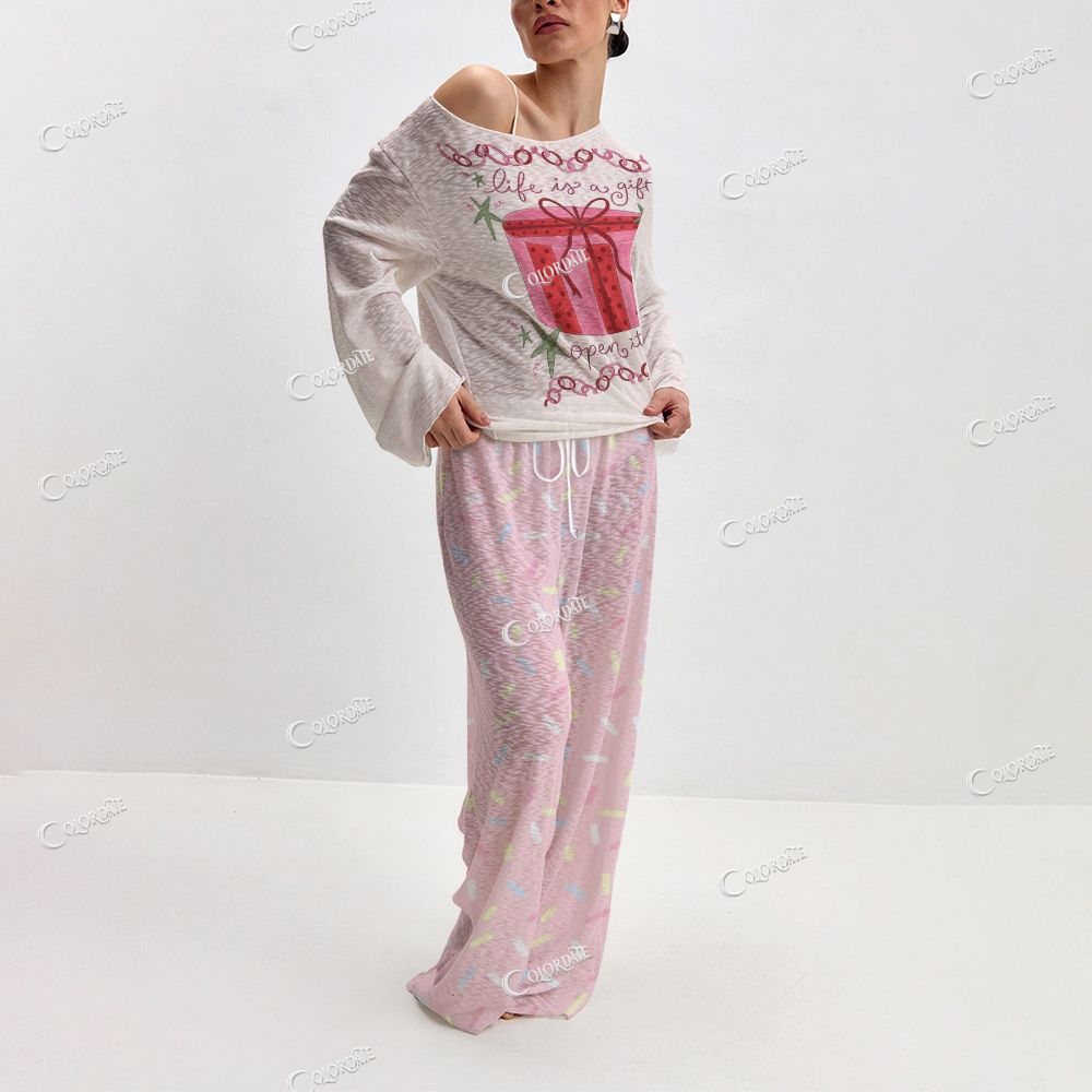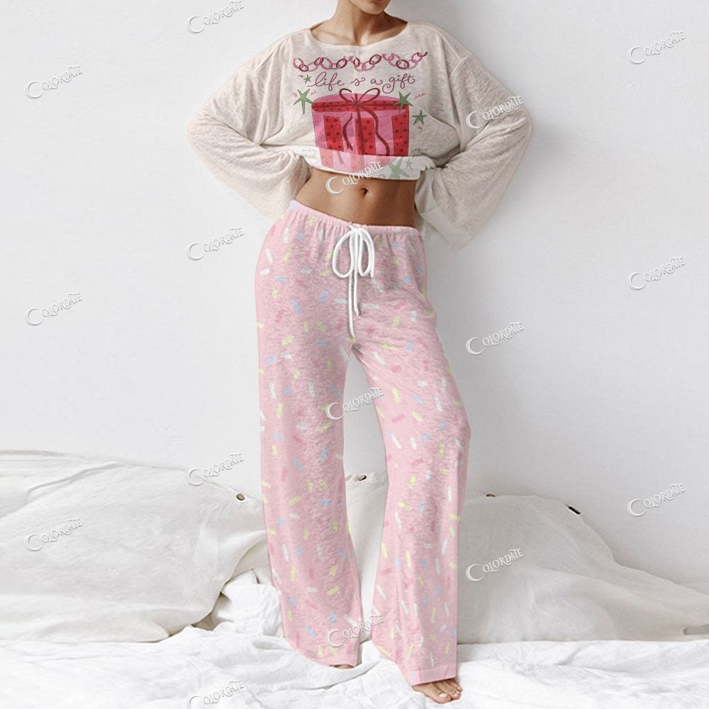 Women's Gift Box Print Long Sleeve Cotton Homewear Set