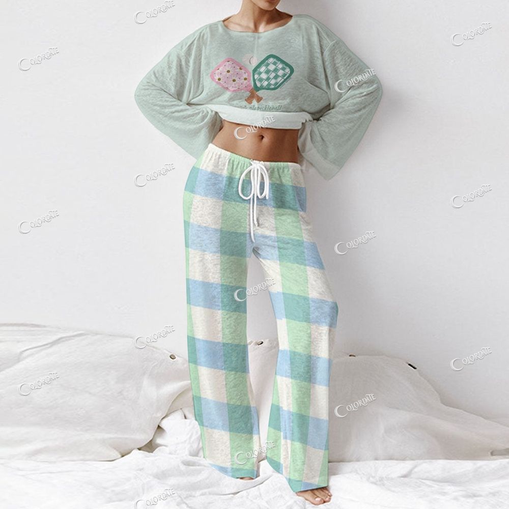 Women's Pickleball Print Long Sleeve Cotton Homewear Set