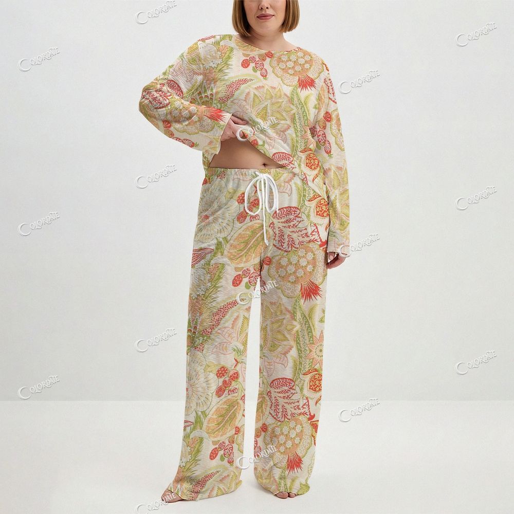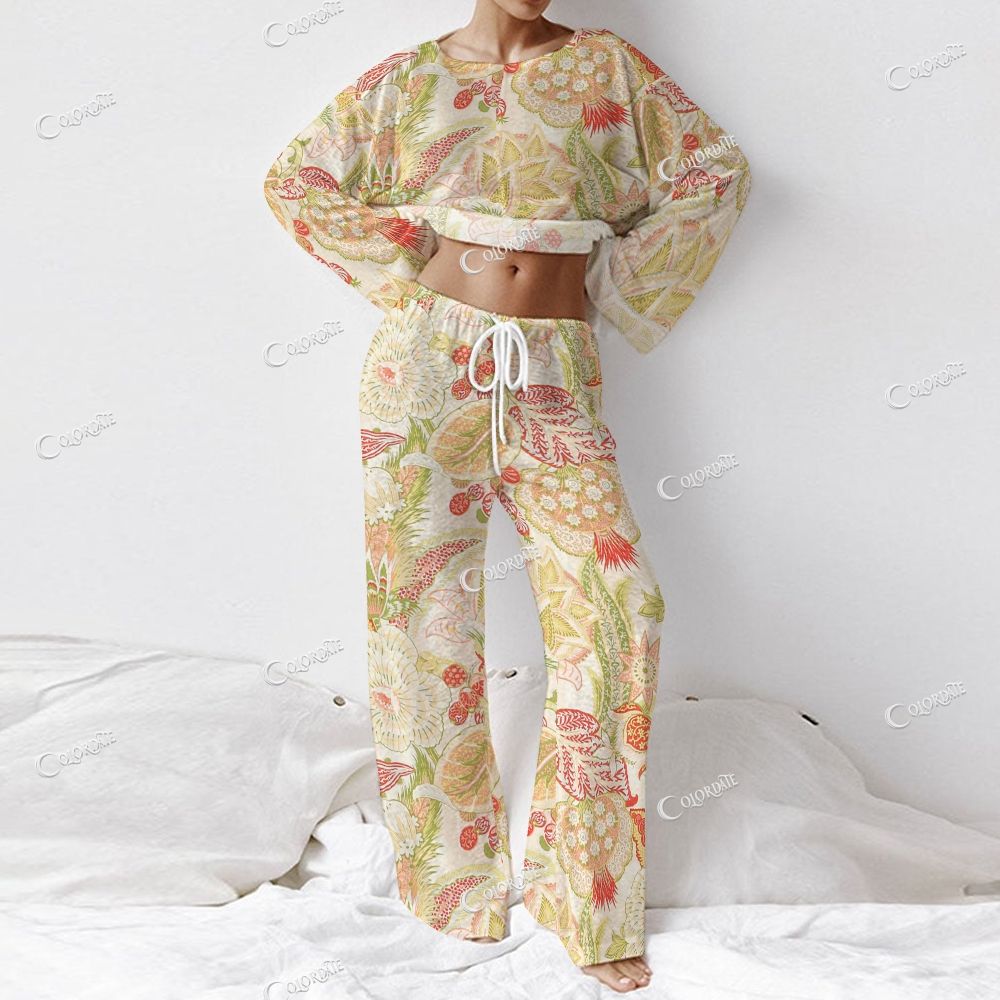 Women's Tropical Botanical Print Long Sleeve Cotton Homewear Set