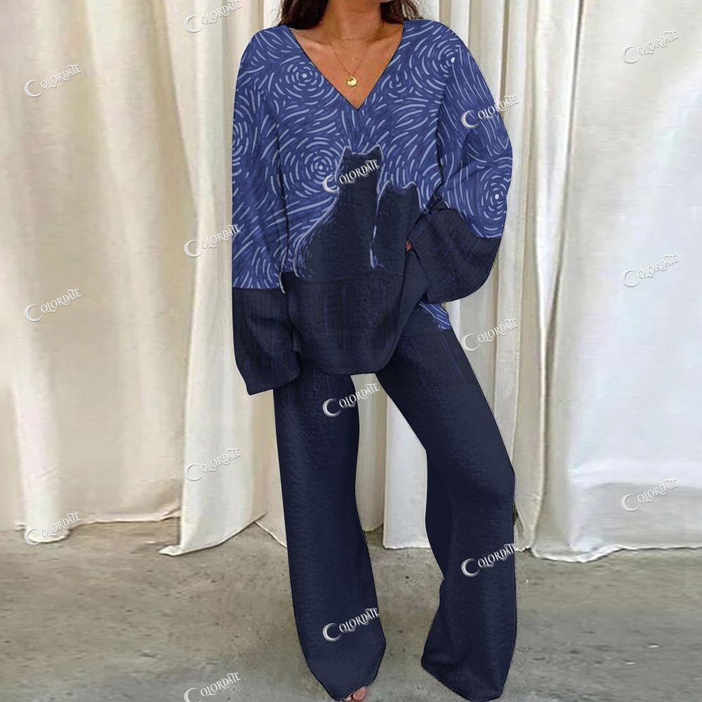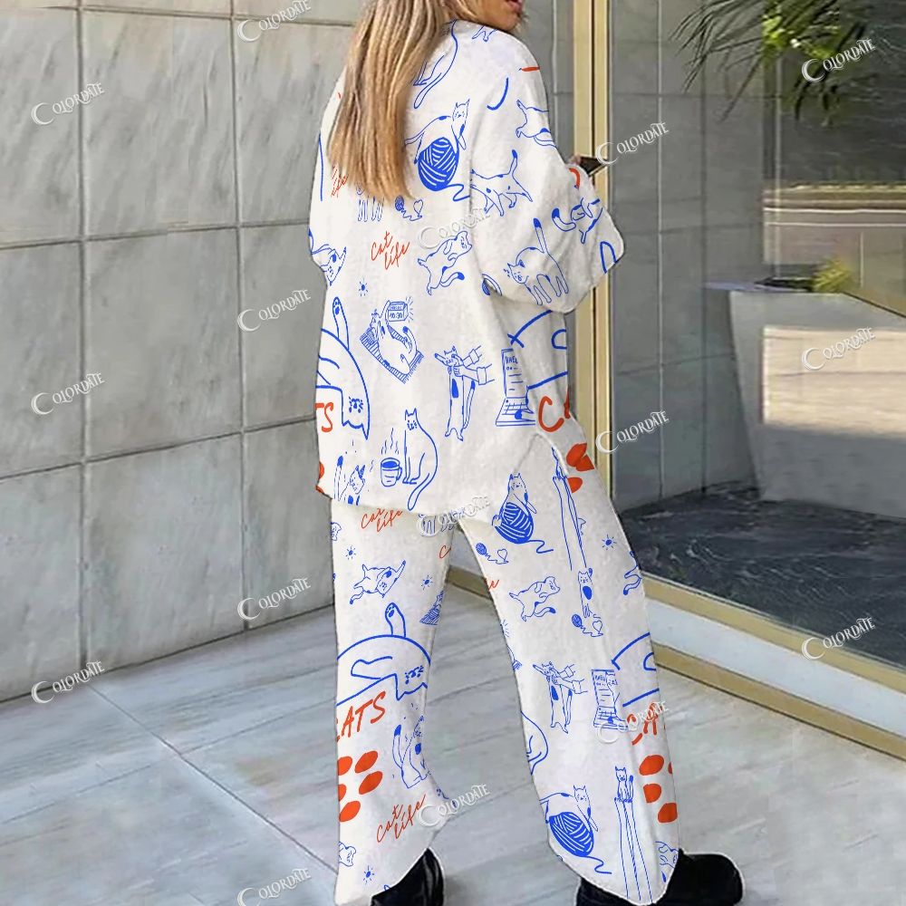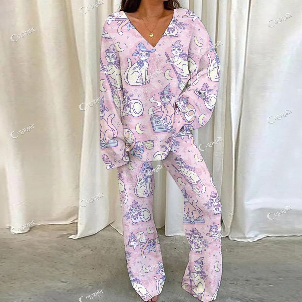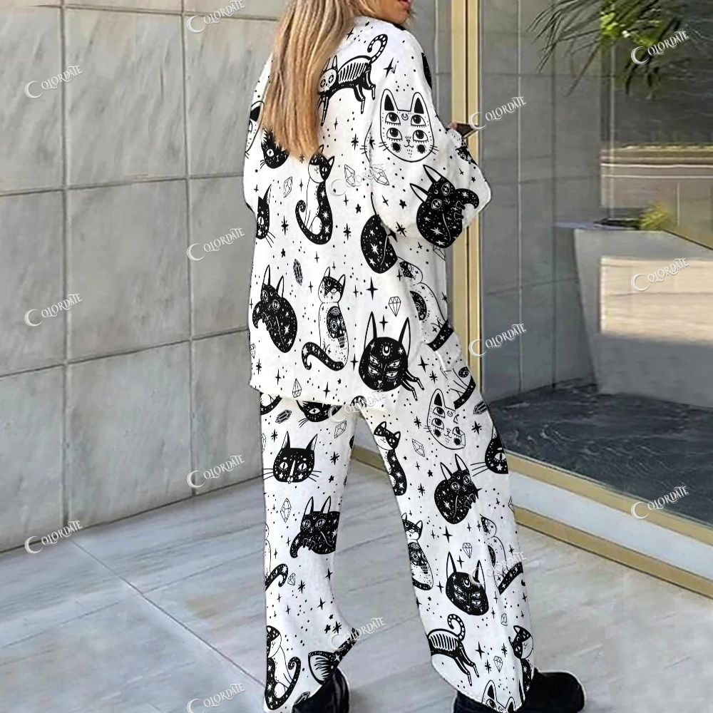 Magic Cat Print Loungewear Set For Women
