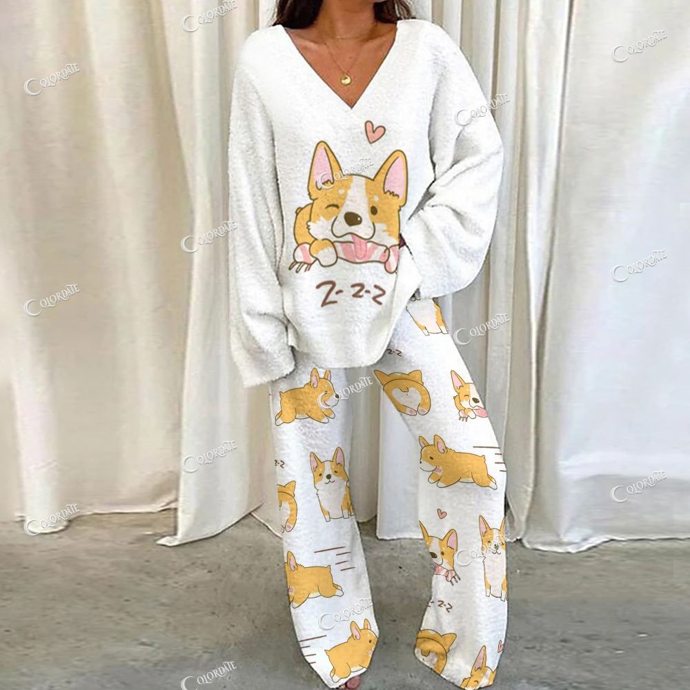 Corgi Print Loungewear Set For Women