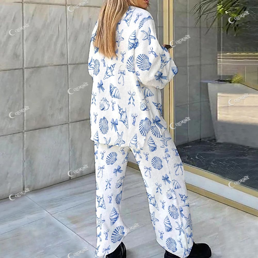 Blue Seashell Print Loungewear Set For Women