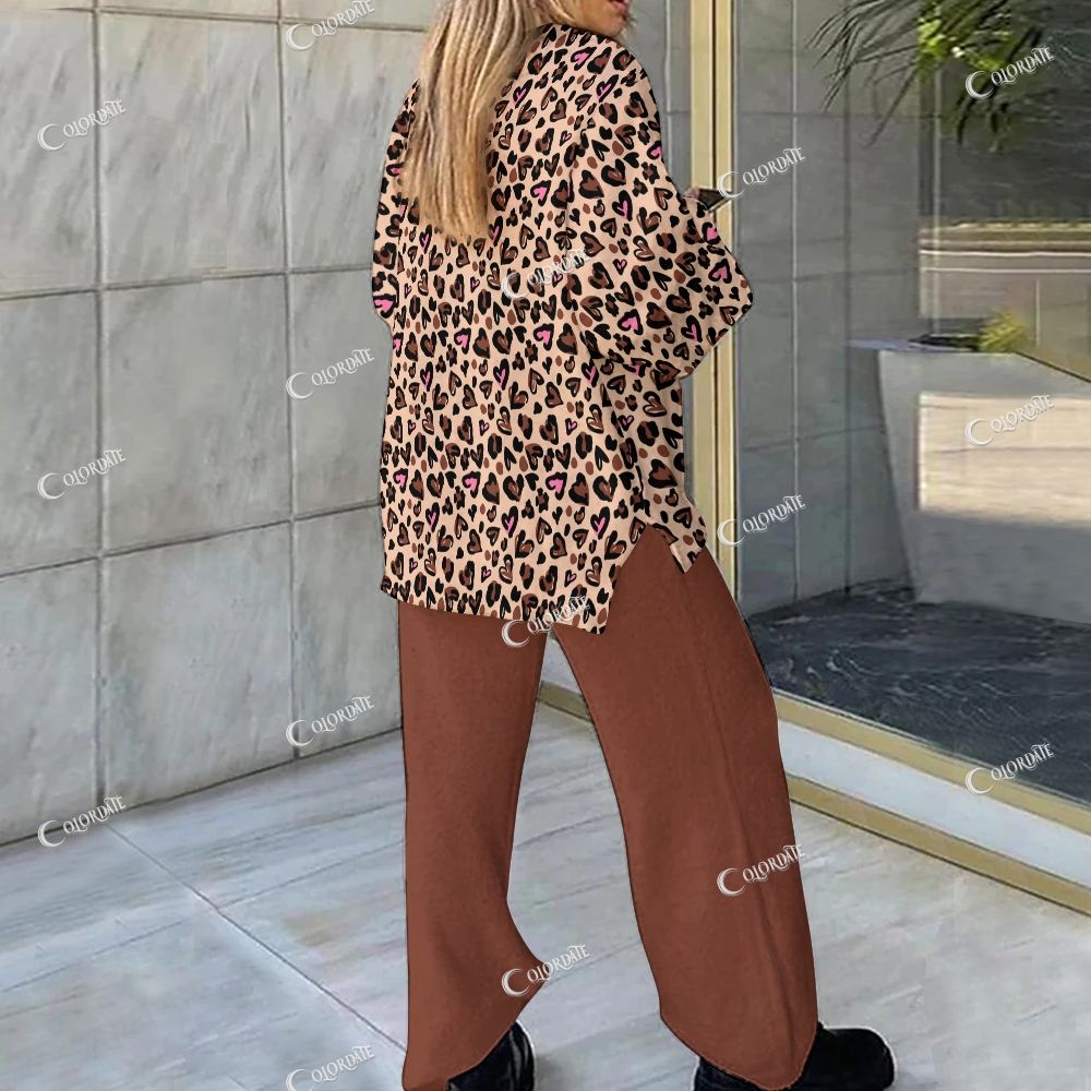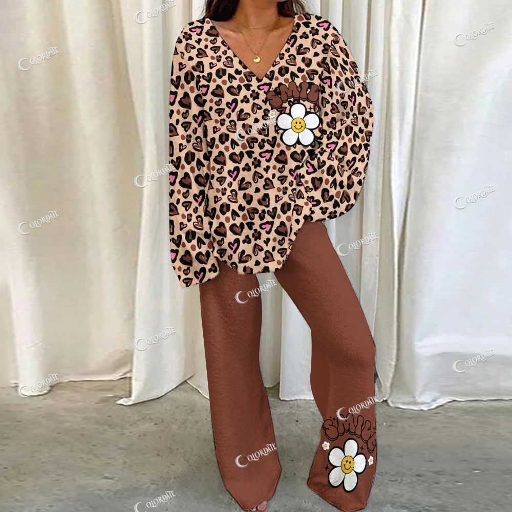 34Leopard Heart Print Loungewear Set For Women