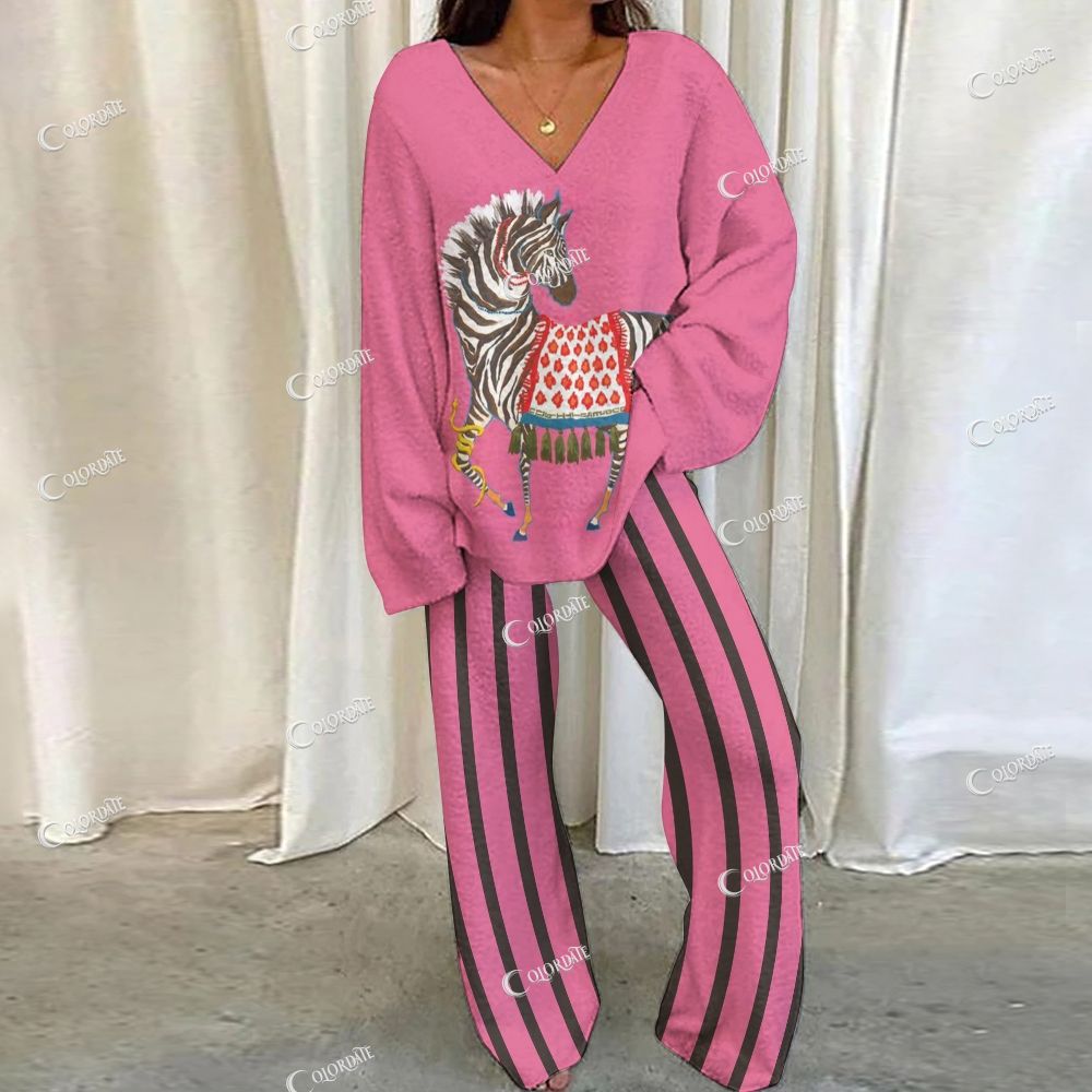 Ornate Zebra Print Loungewear Set For Women