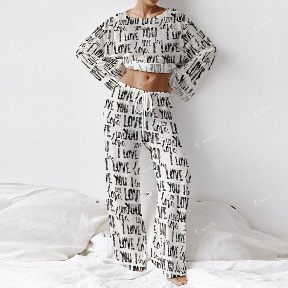 Colordate Women's Love You Letter Print Long Sleeve Homewear Set