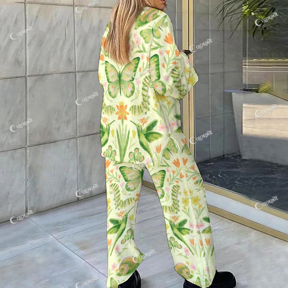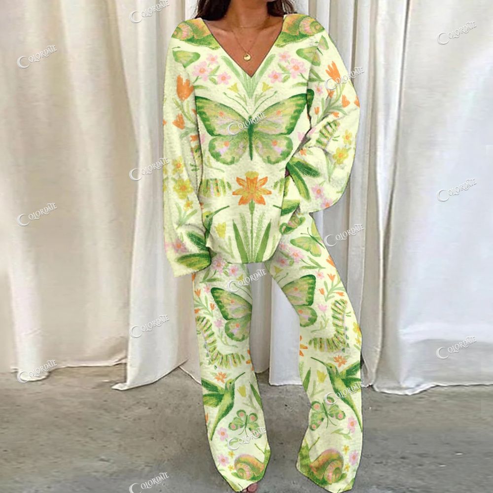 Butterfly Garden Print Loungewear Set For Women