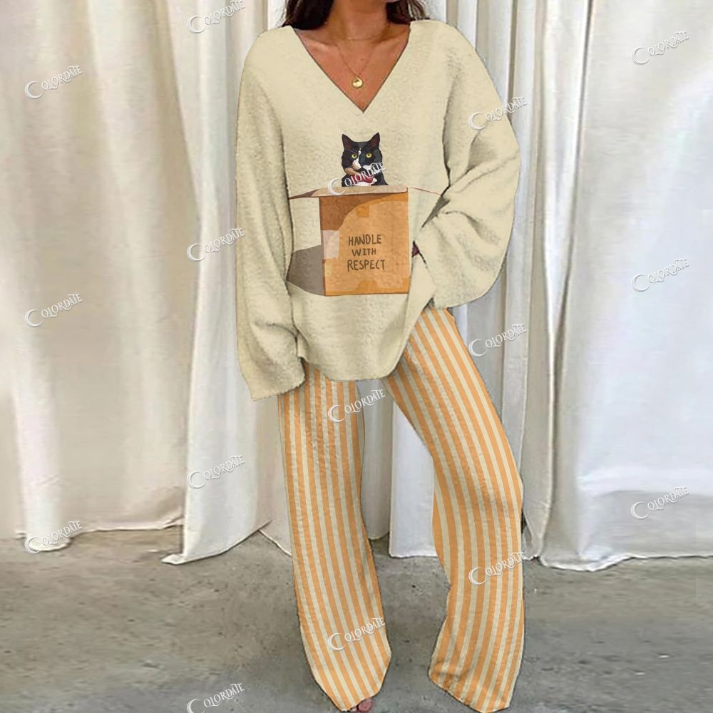 Cat In Box Print Loungewear Set For Women