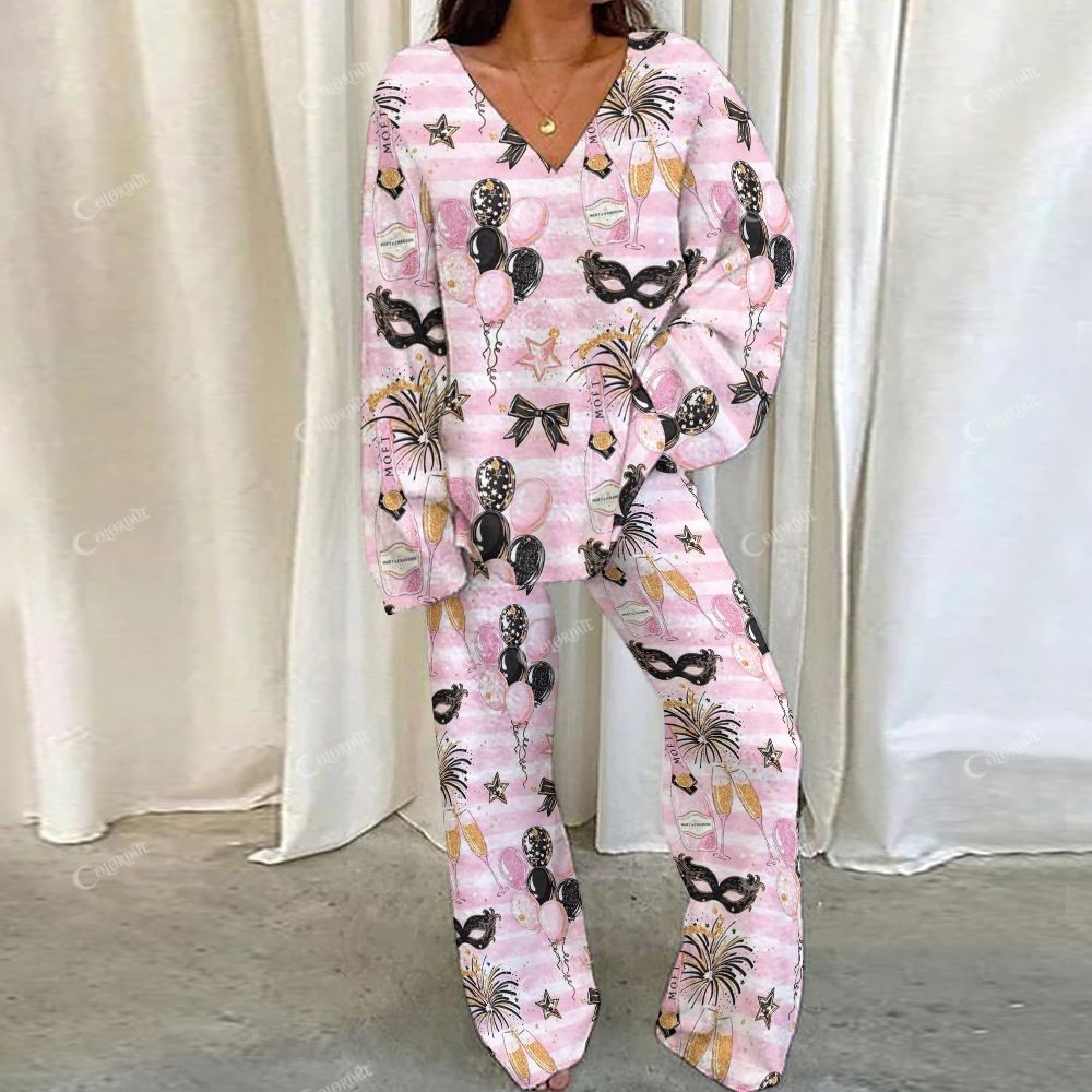 Colordate Balloons And Wine Prints Loungewear Set For Women