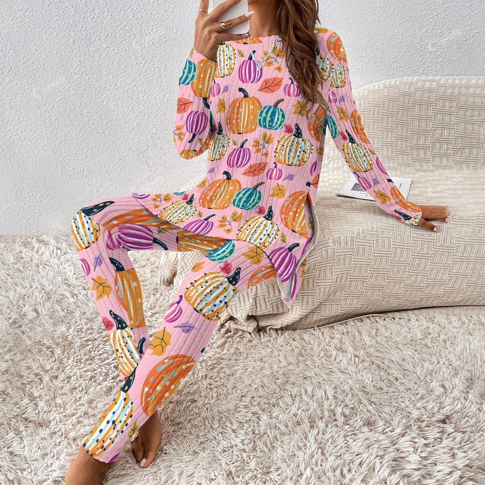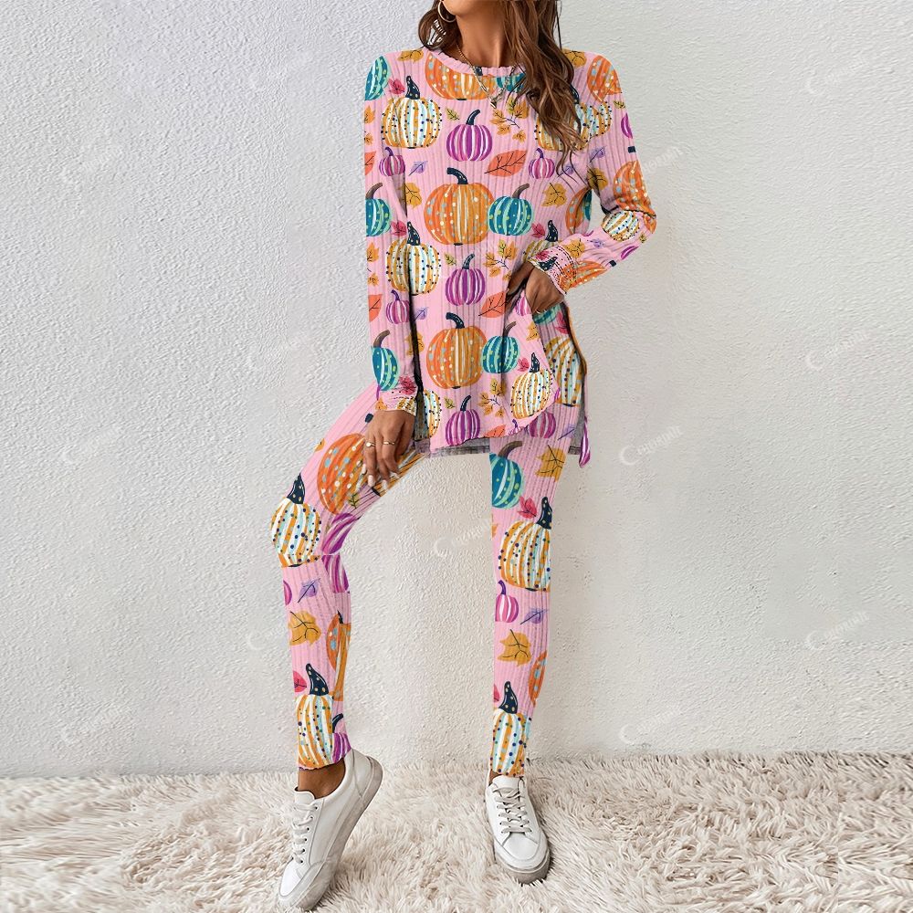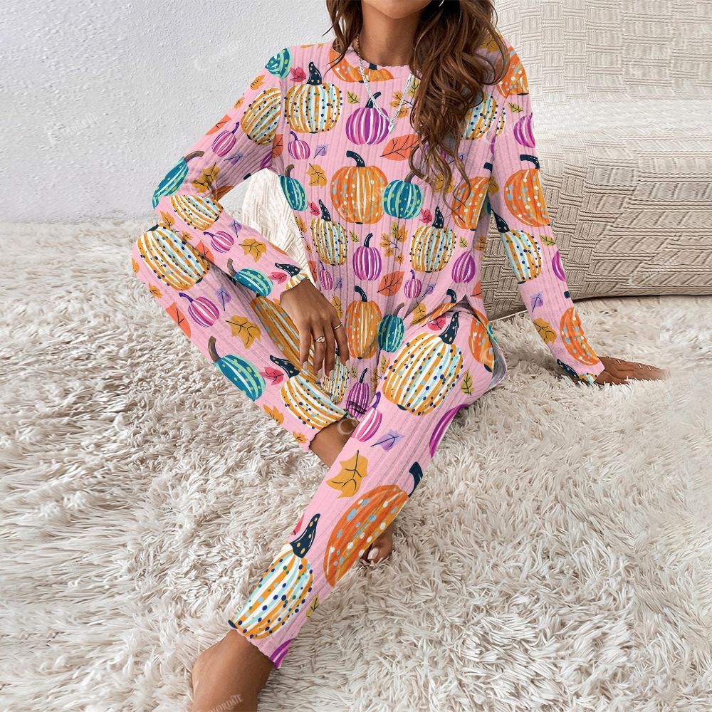 Colordate Women's Colorful Pumpkin Print Long Sleeve Suit