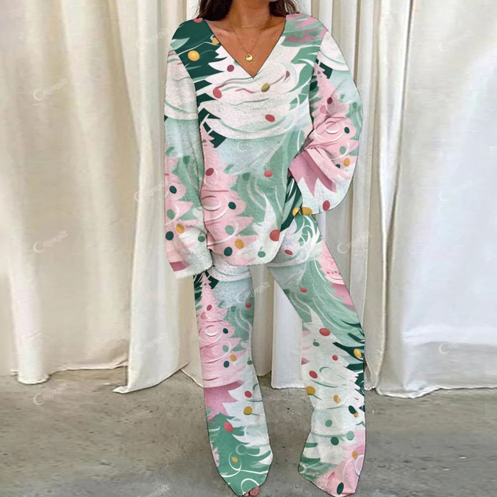 Green and White Floral Print Loungewear Set For Women