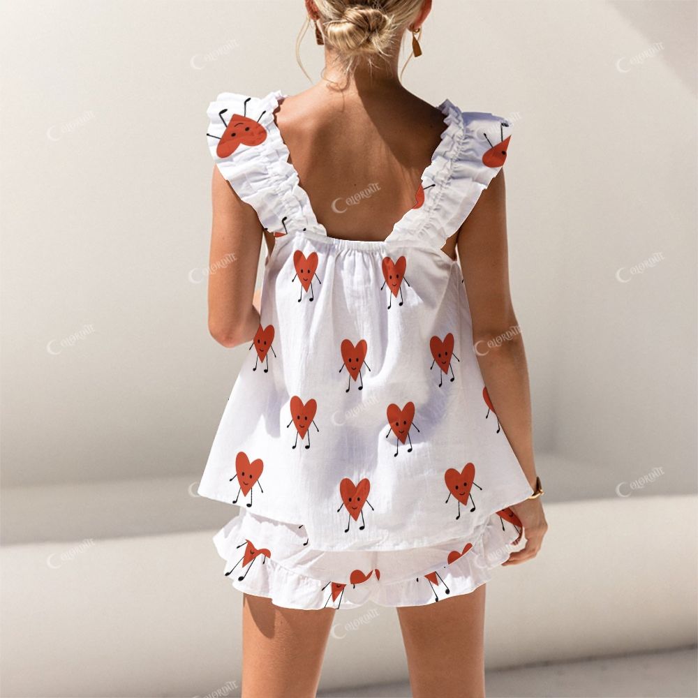 Short Tank Top Shorts Cartoon Fun Heart Pajama Set