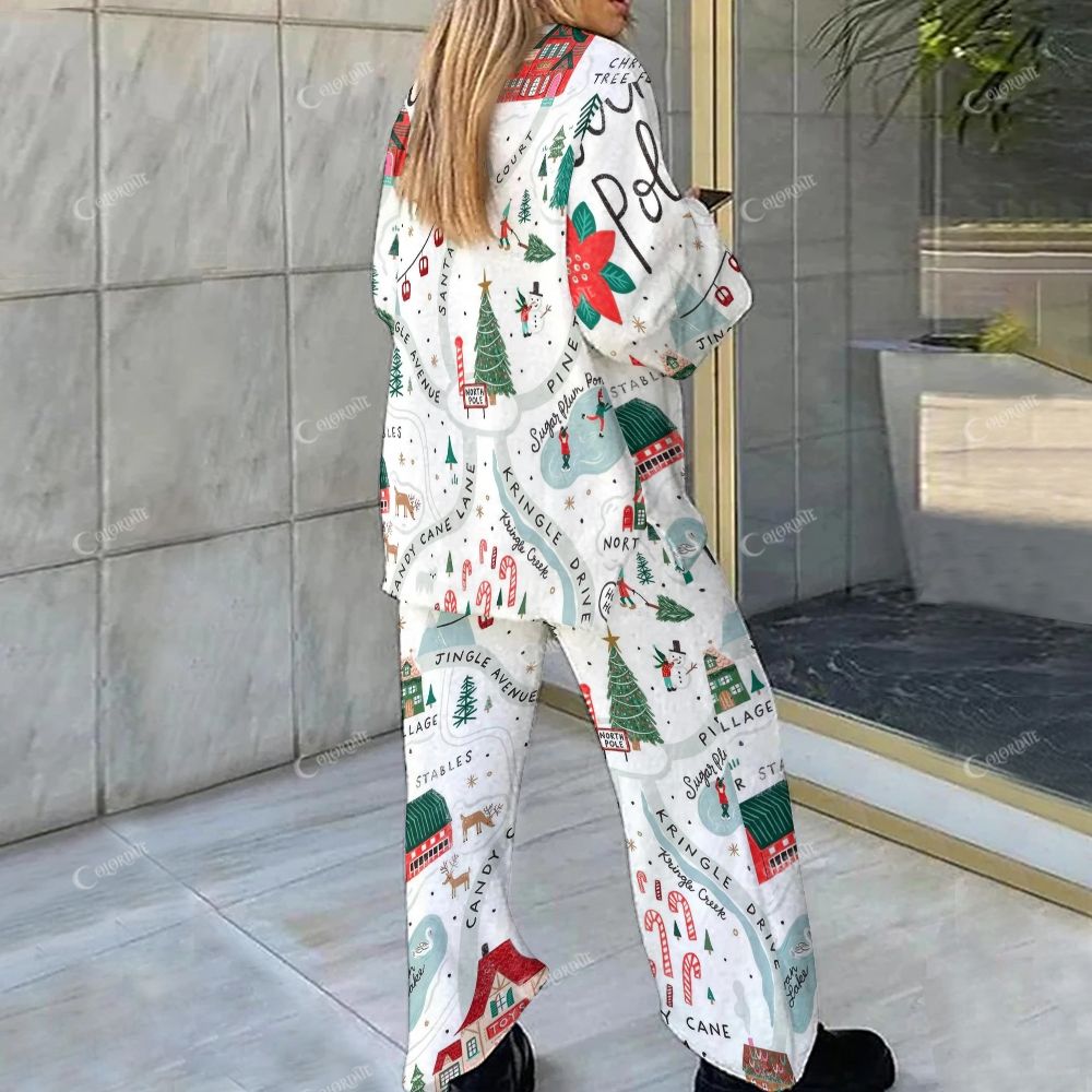 White Christmas Tree Print Loungewear Set For Women