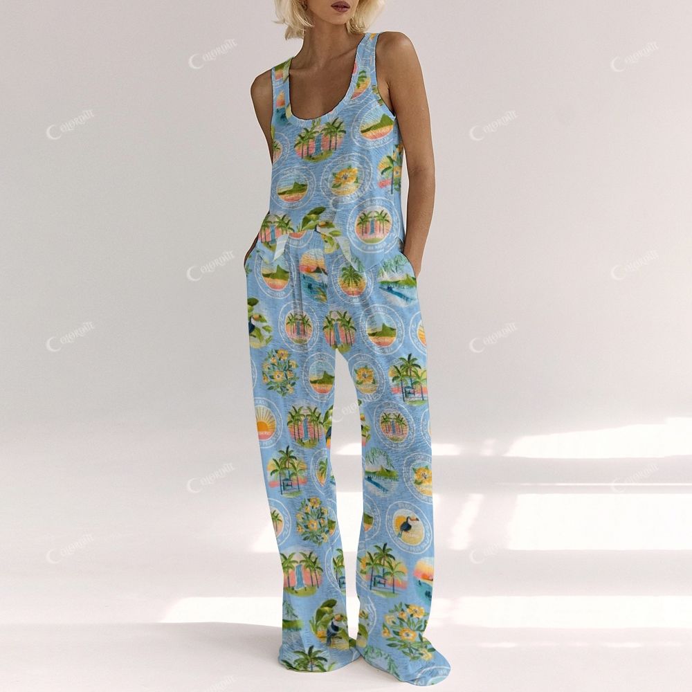 Women's Blue Beach Vest and Pants Set