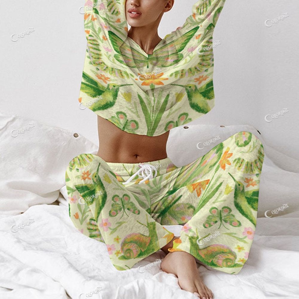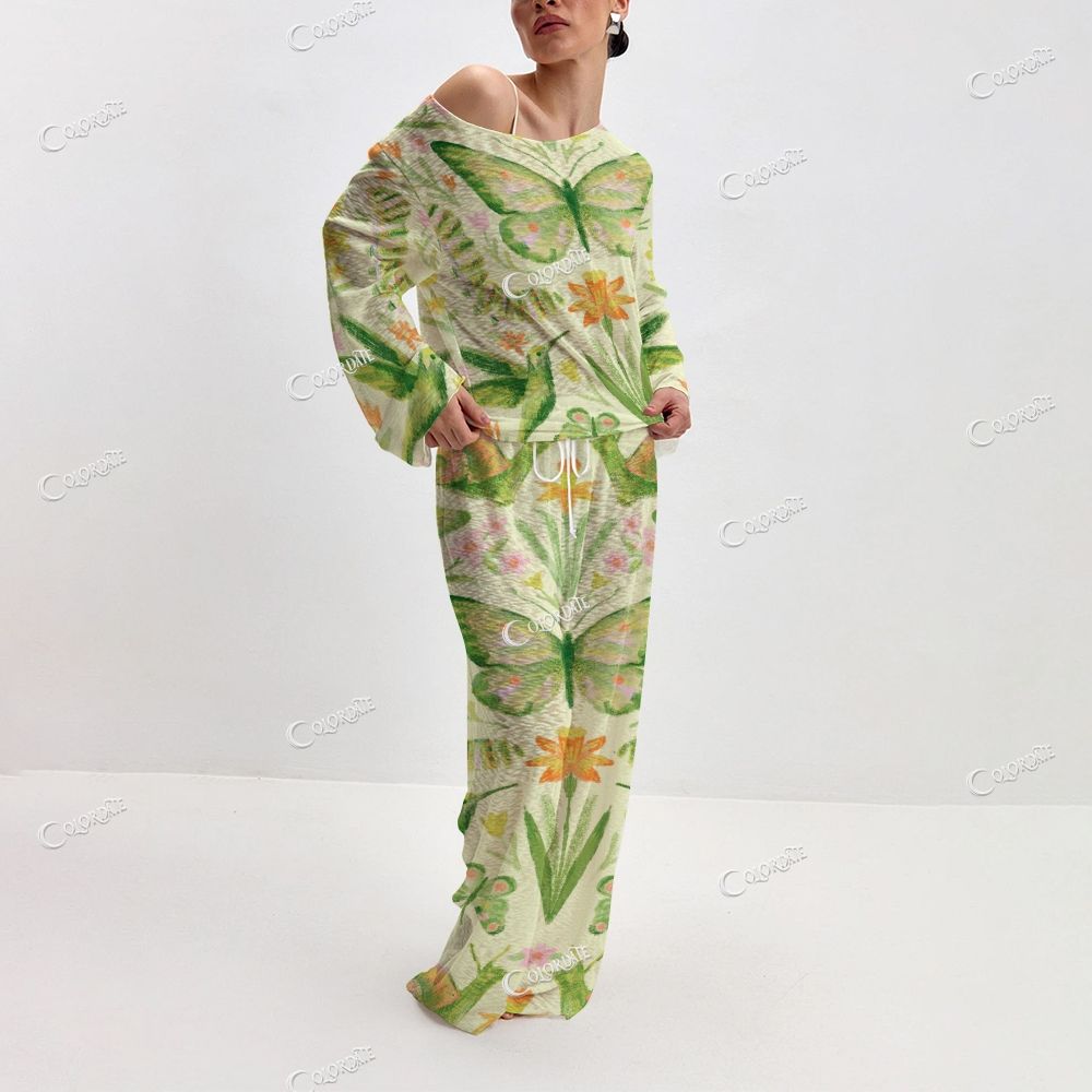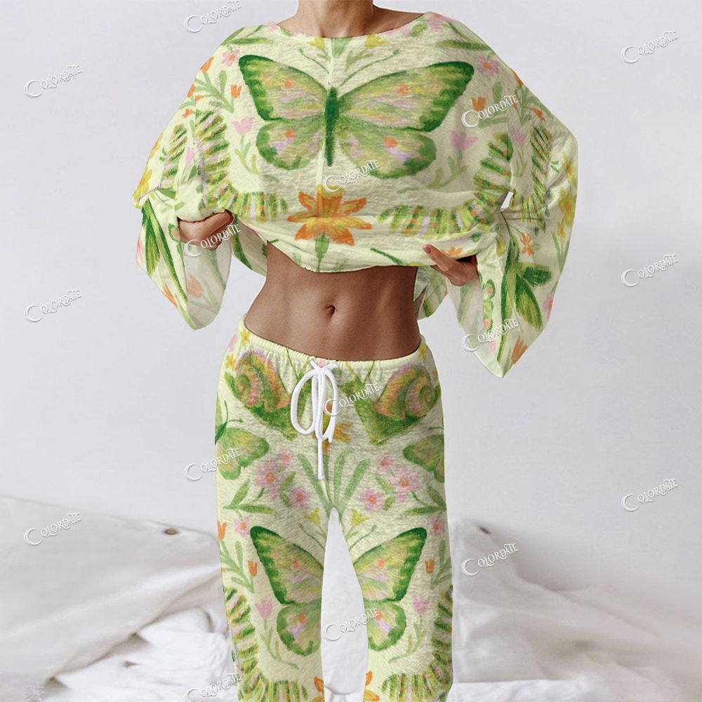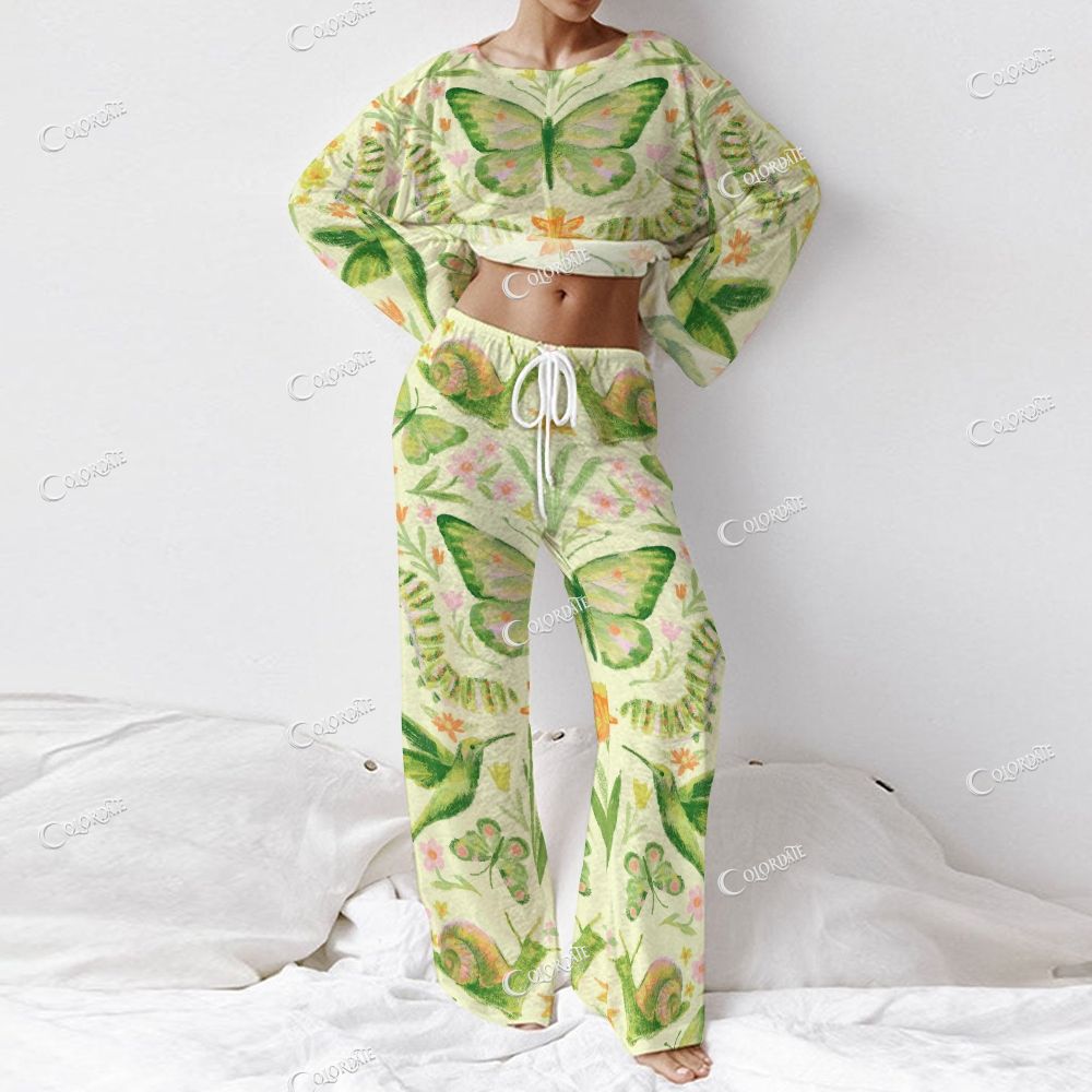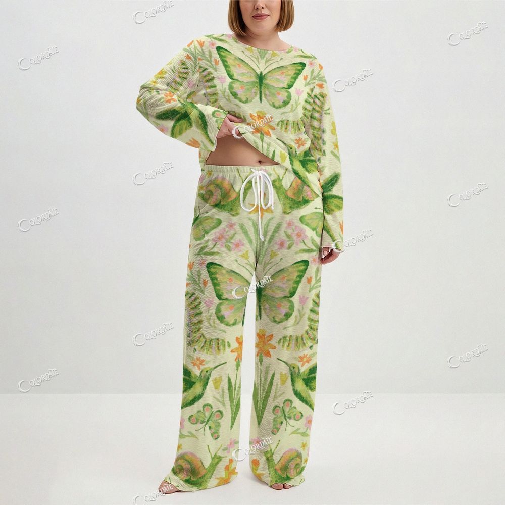 Women's Butterfly Garden Print Long Sleeve Cotton Homewear Set