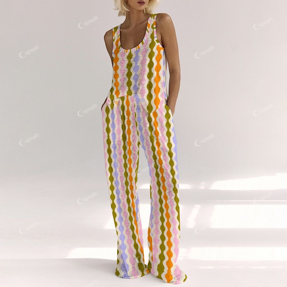 Women's Colorful Colorblock Stripe Vest and Pants Set