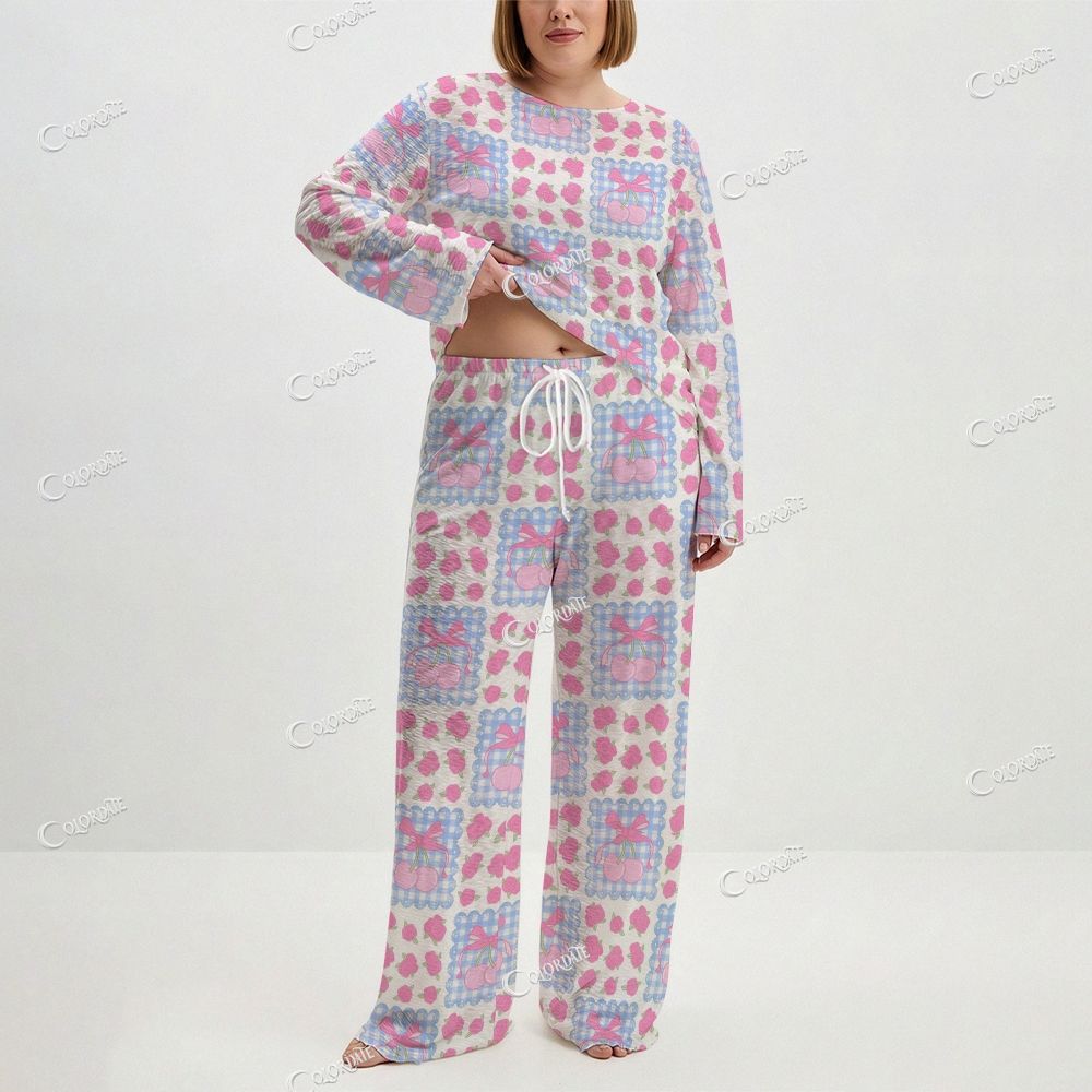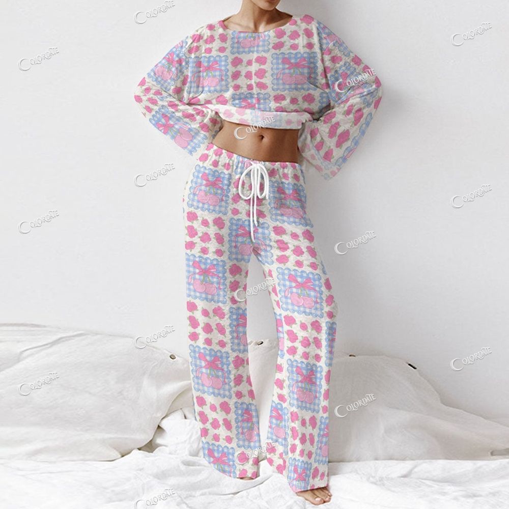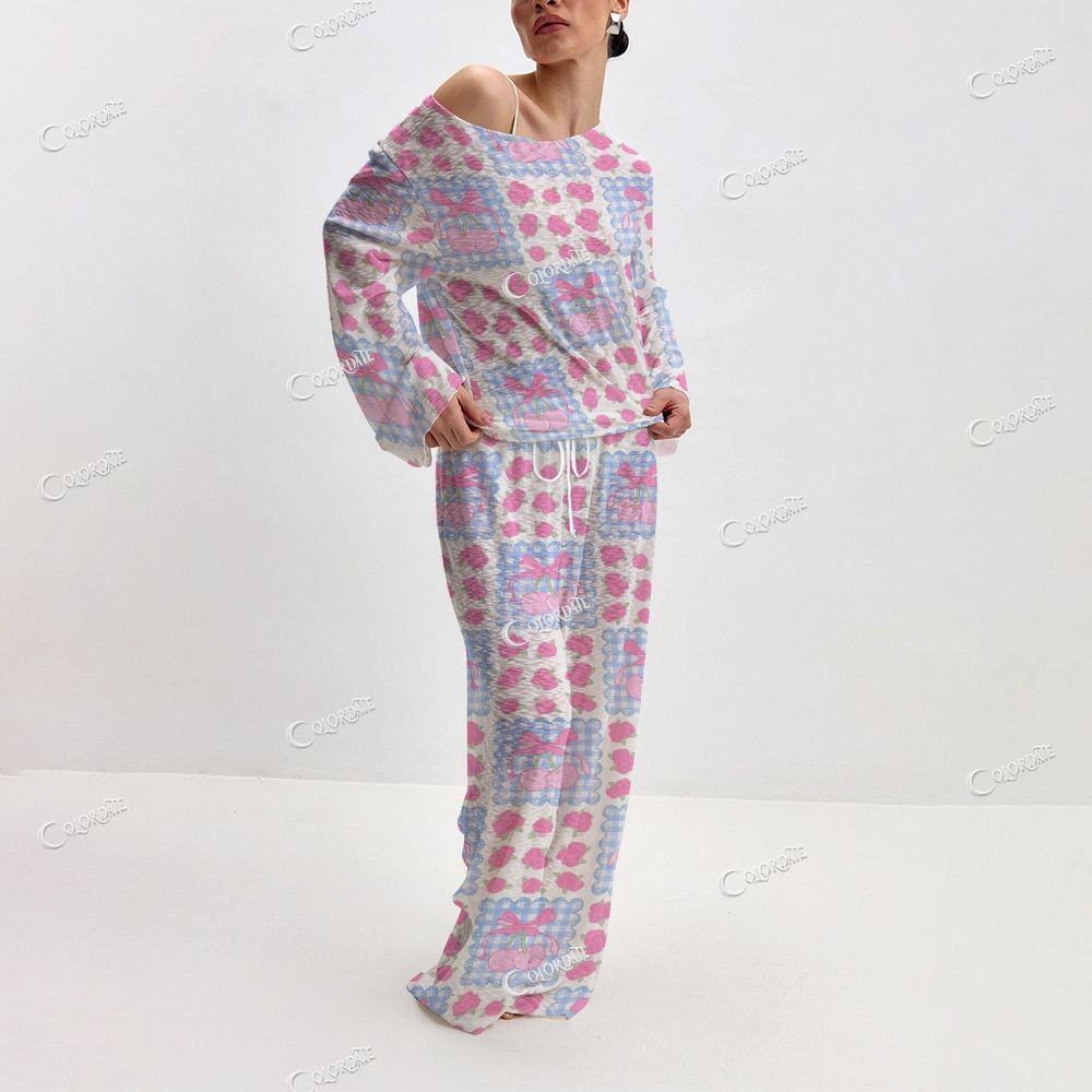 Women's Pastel Patchwork Knit Long Sleeve Cotton Homewear Set