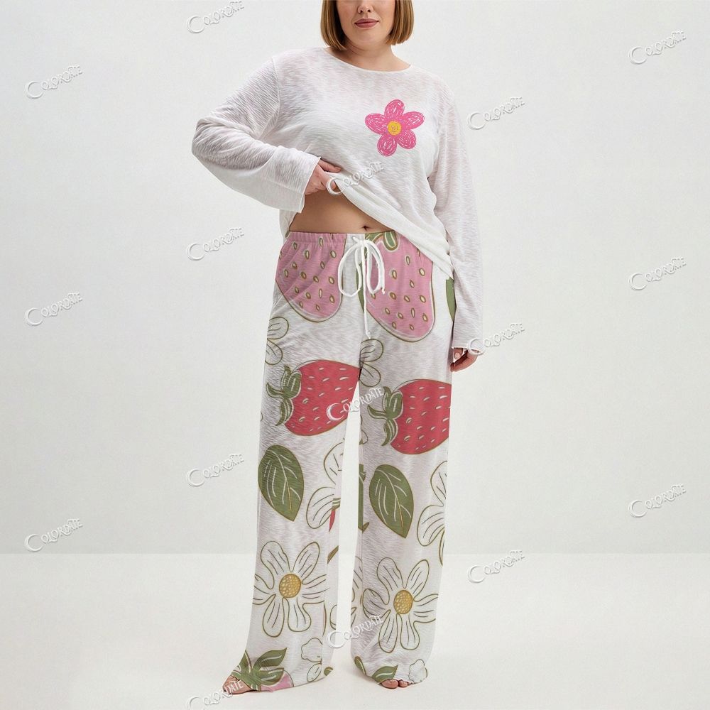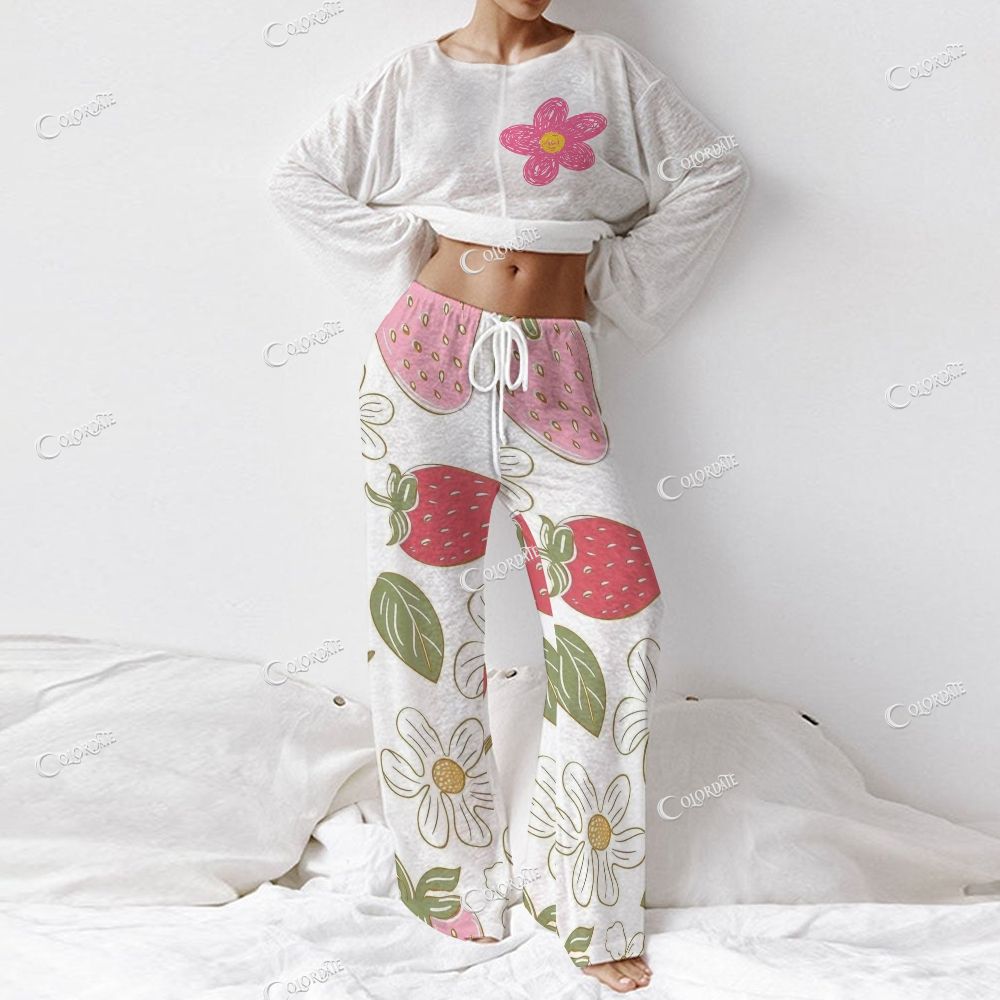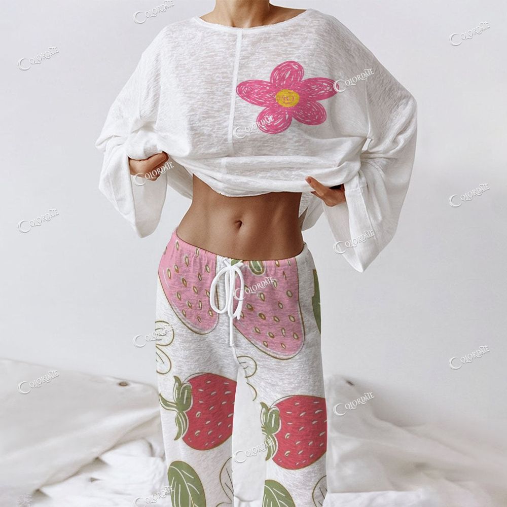 Women's Strawberry & Pink Flower Long Sleeve Cotton Homewear Set