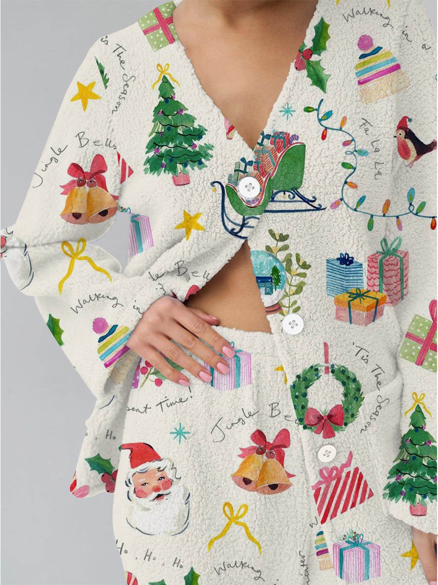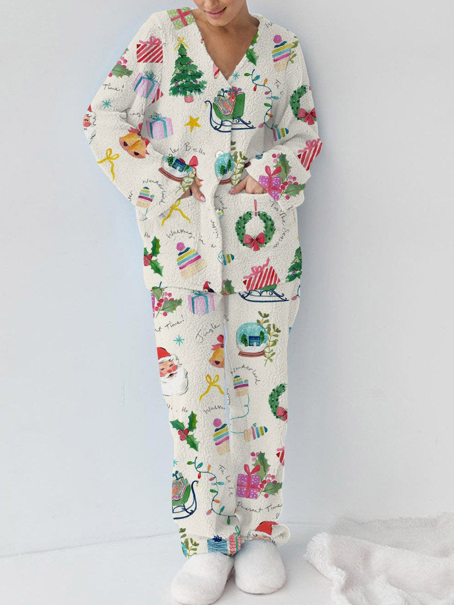 Women's Christmas Graffiti Print Casual Polar Fleece Suit