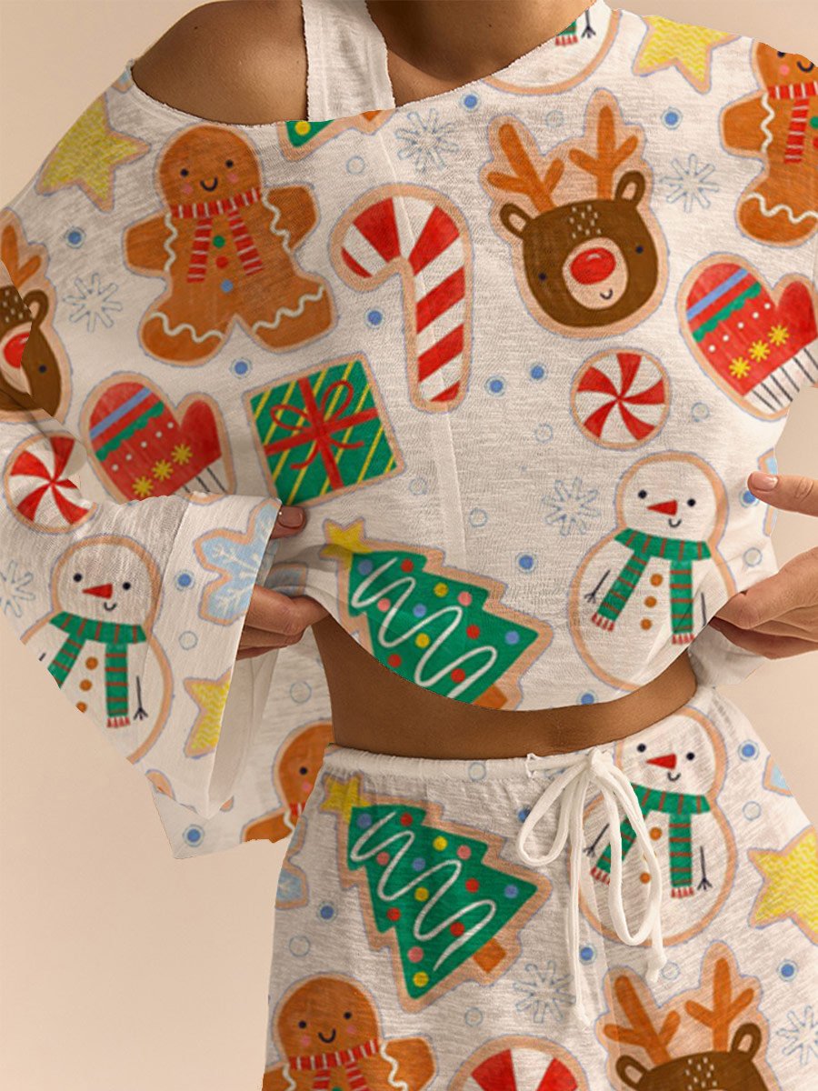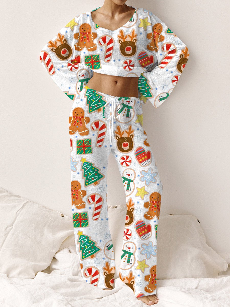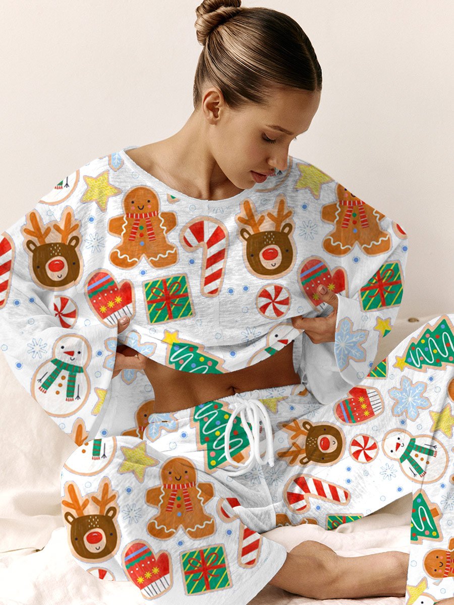 Women's Christmas Graffiti Print Long Sleeve Lounge Set