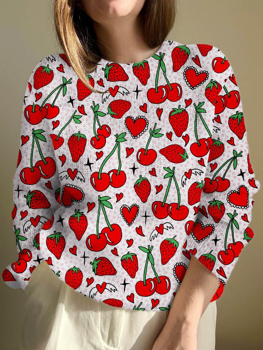 Women's Pink Art Painting Print Home Crew Neck Sweater