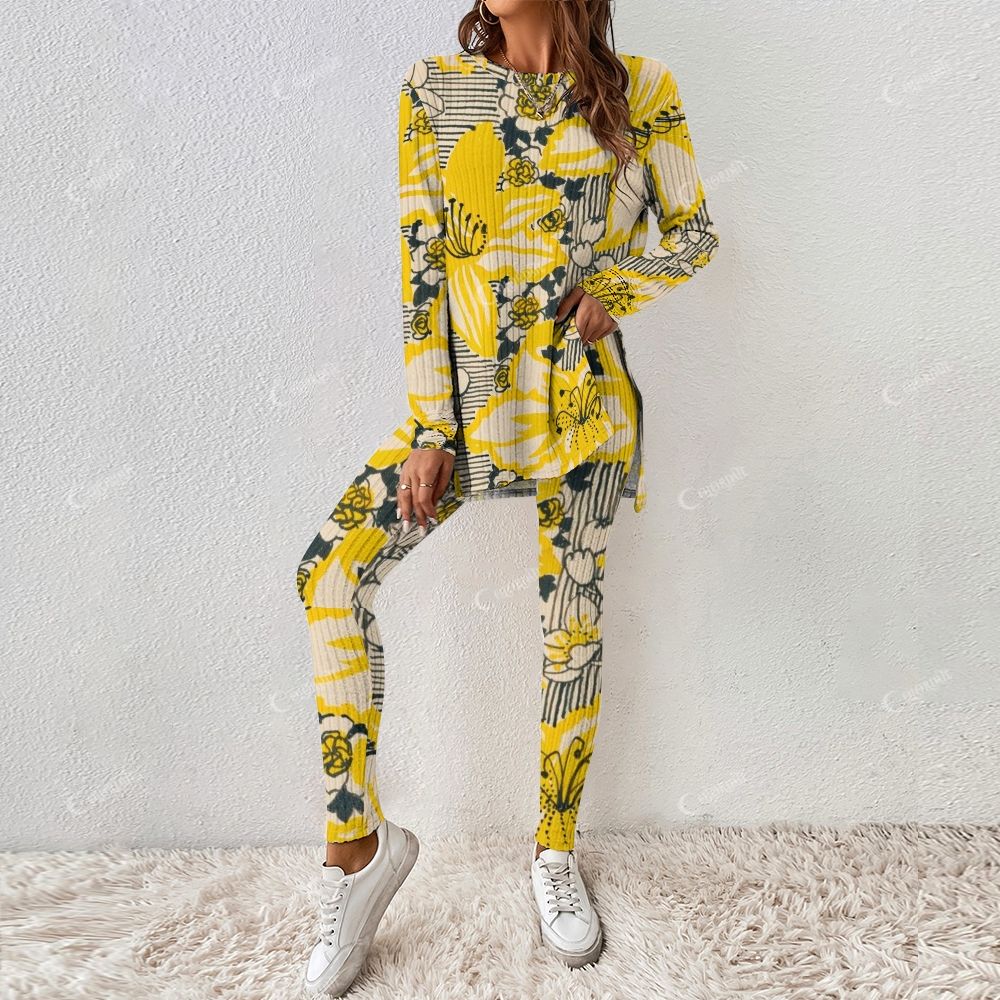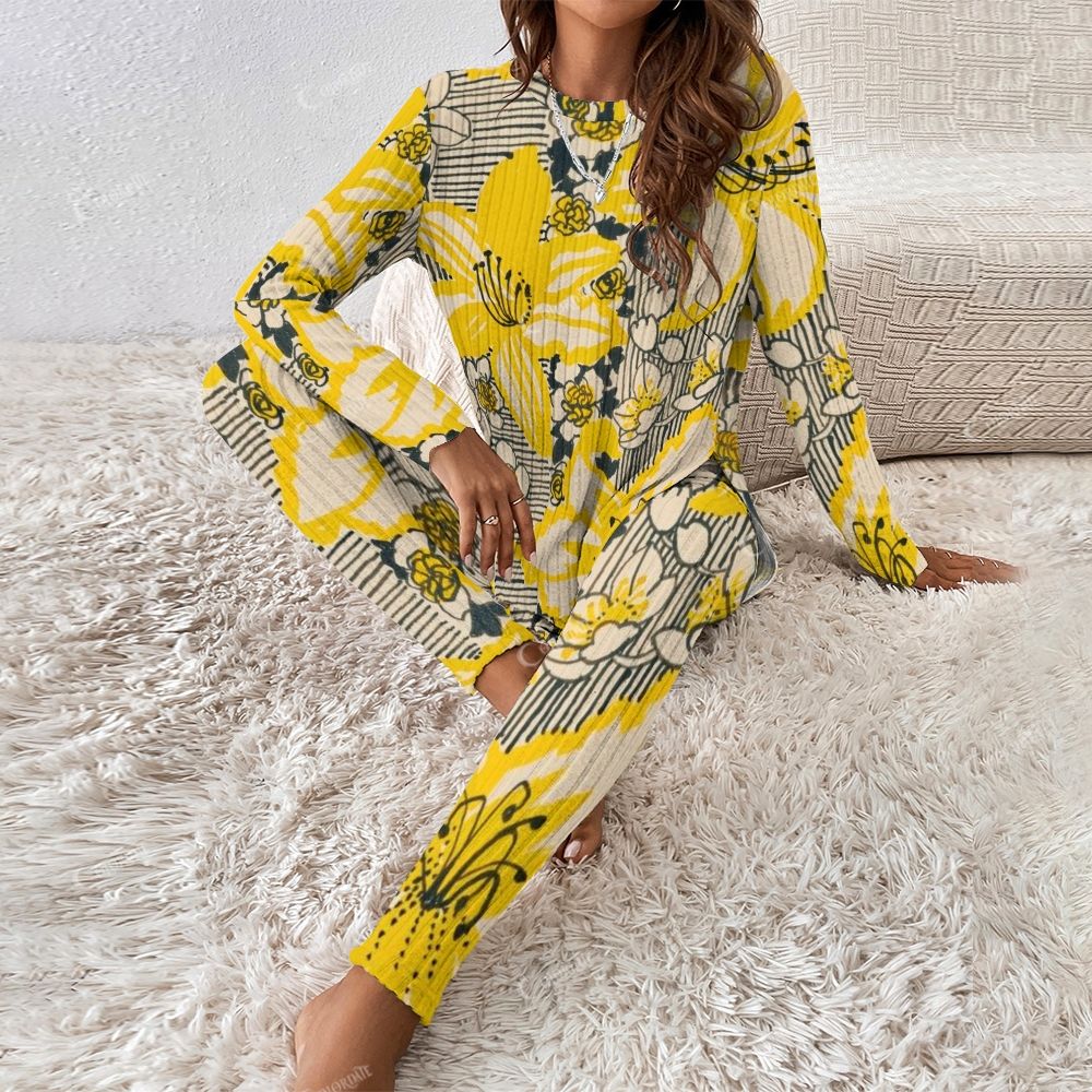 Yellow and Black Pattern Women's Long Sleeve Suit