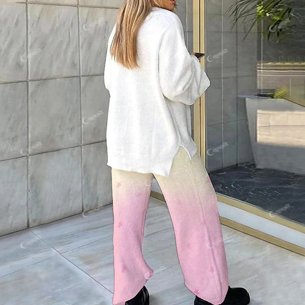 "you can do it" Pattern and Pink-Beige Gradient Loungewear Set For Women