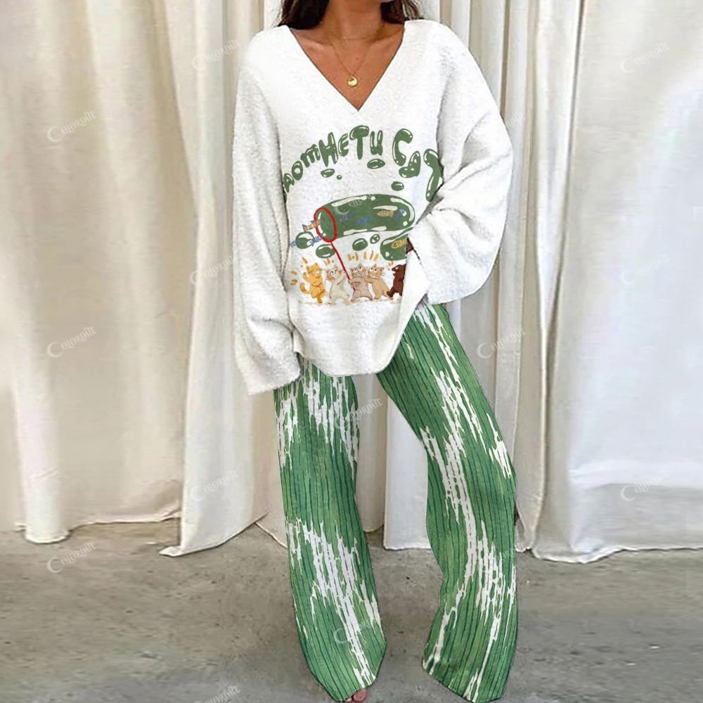 Cartoon Pattern Loungewear Set For Women