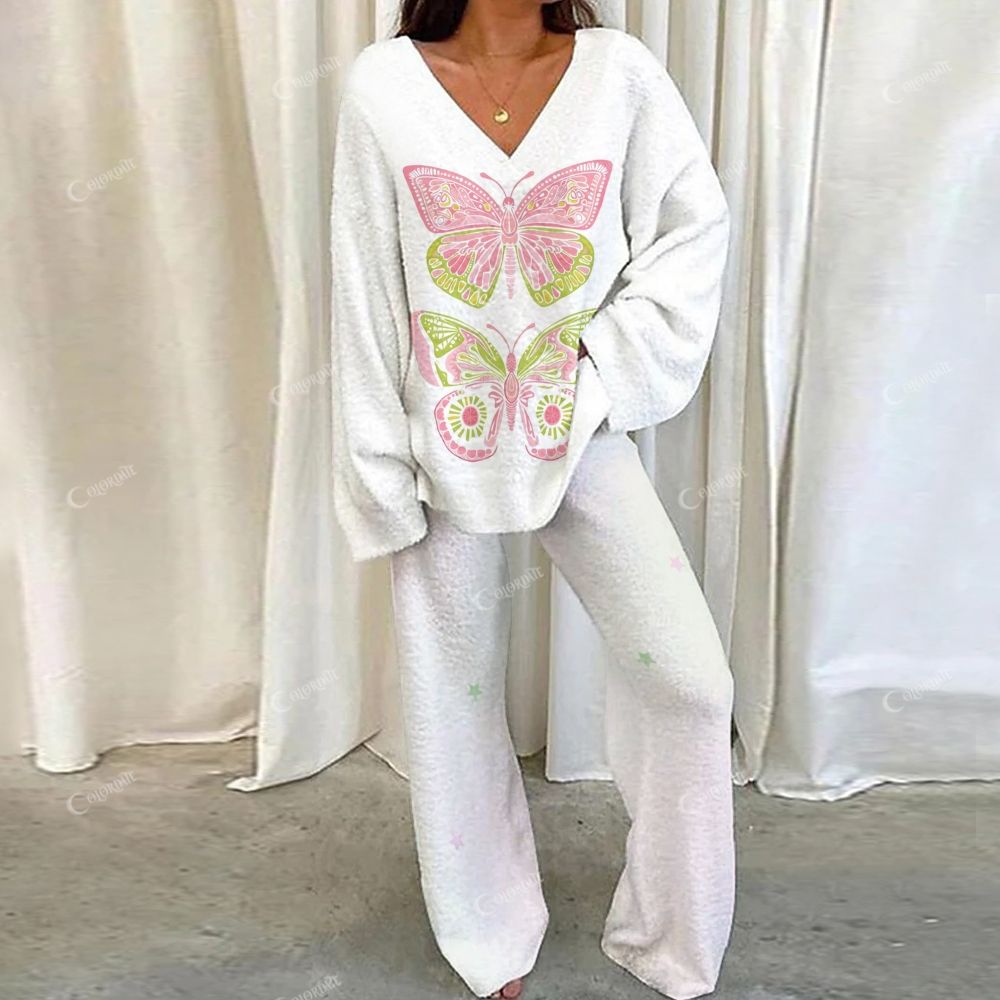 Pink Butterfly Pattern Loungewear Set For Women