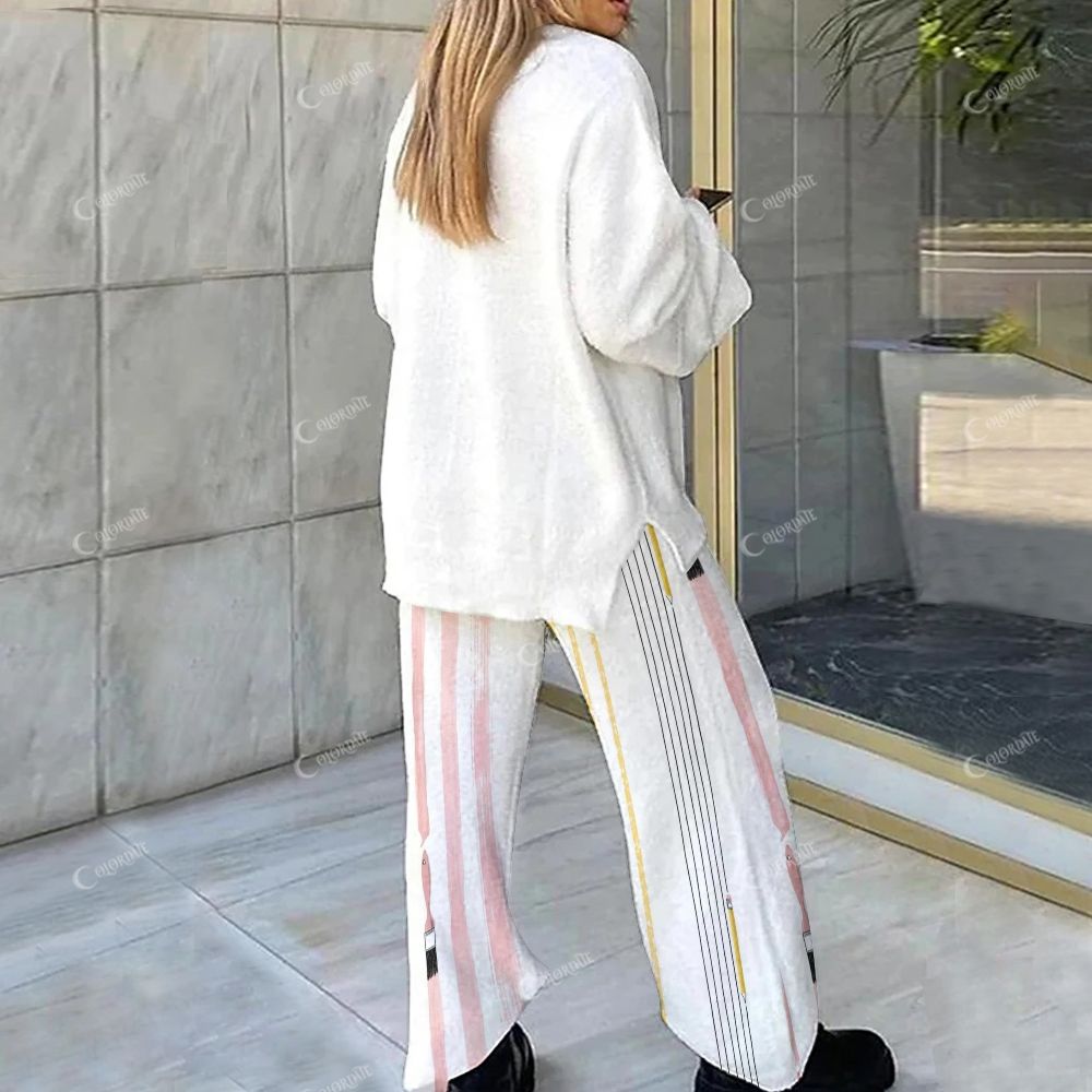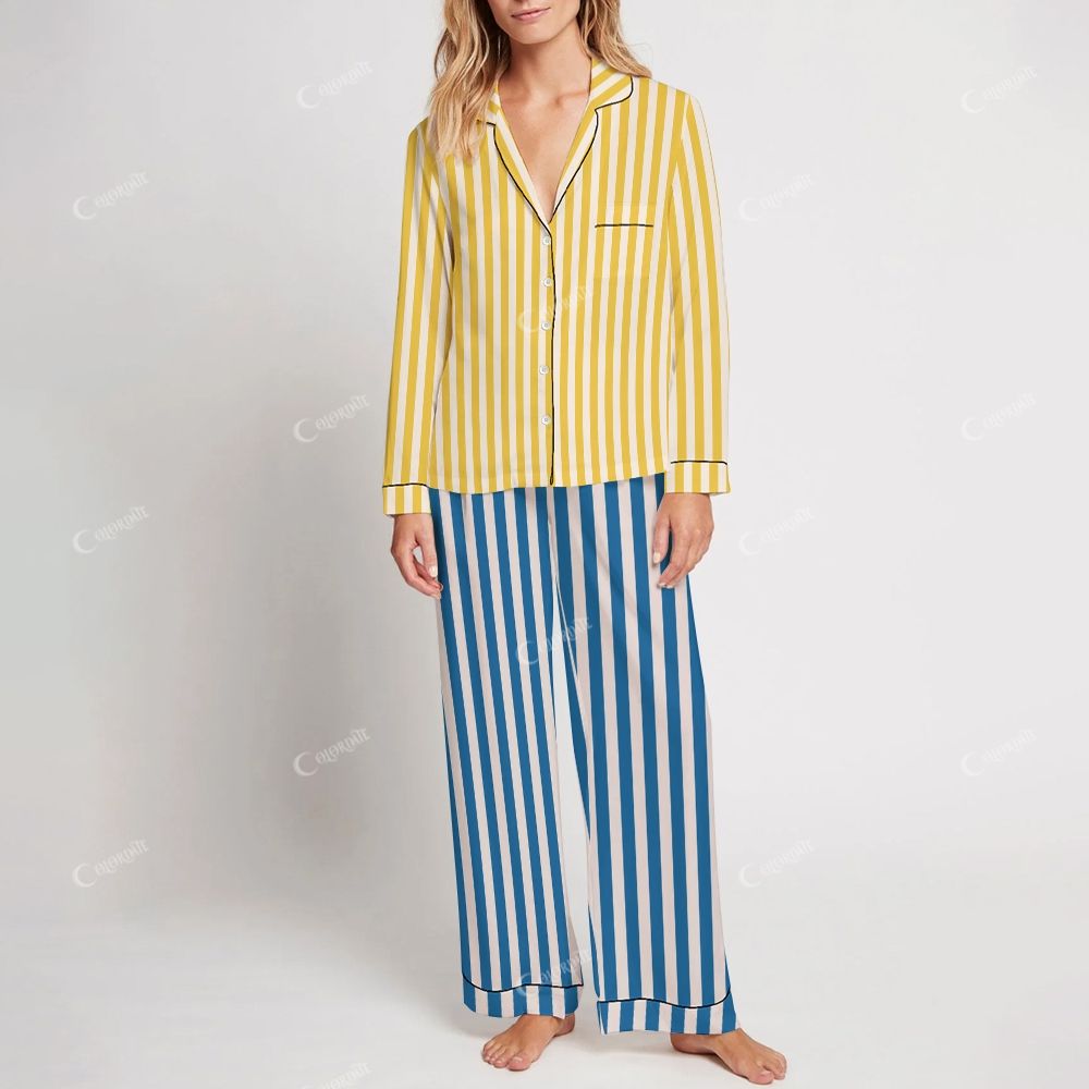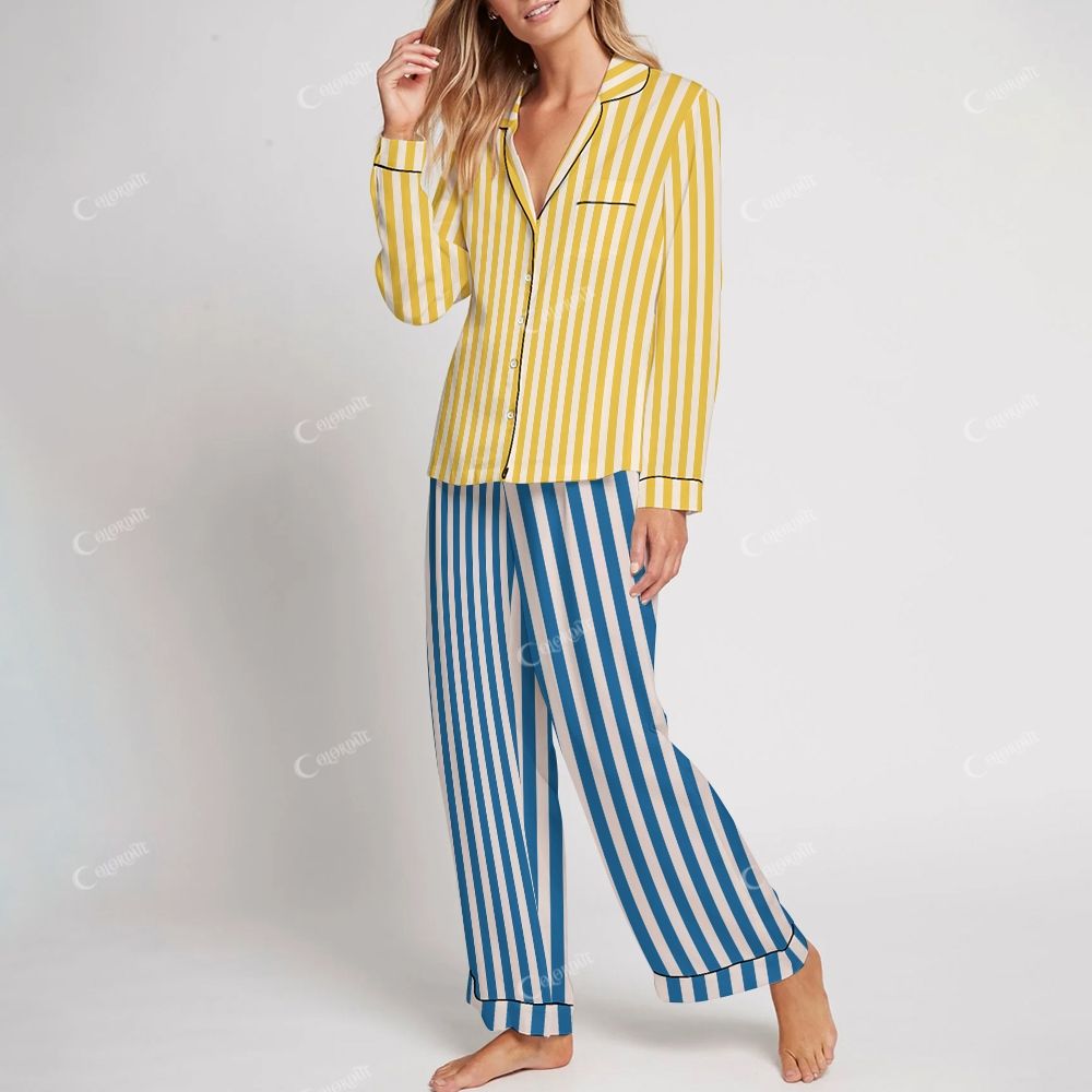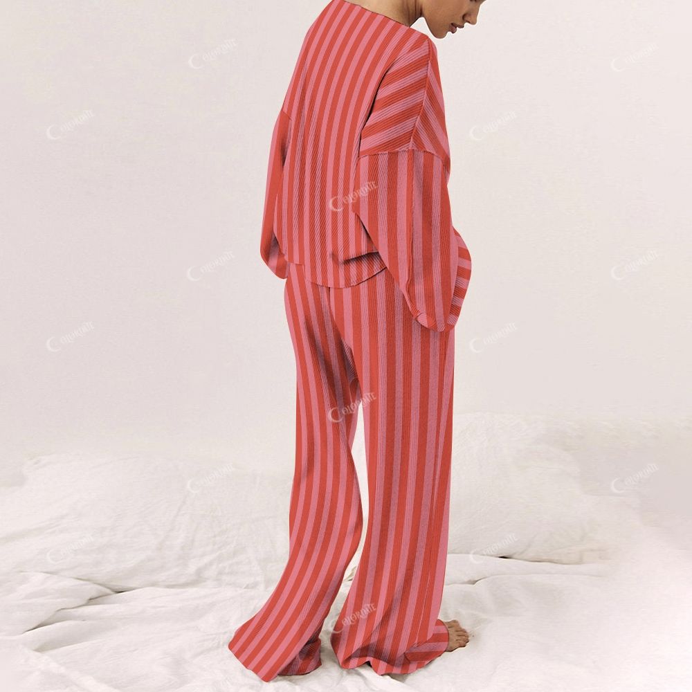 Colordate Women's Stripes Print Home Long Sleeve Suit