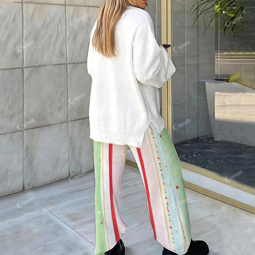 Colordate Christmas Tree And Striped Prints Loungewear Set For Women