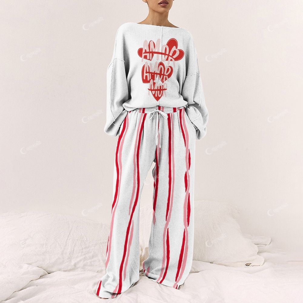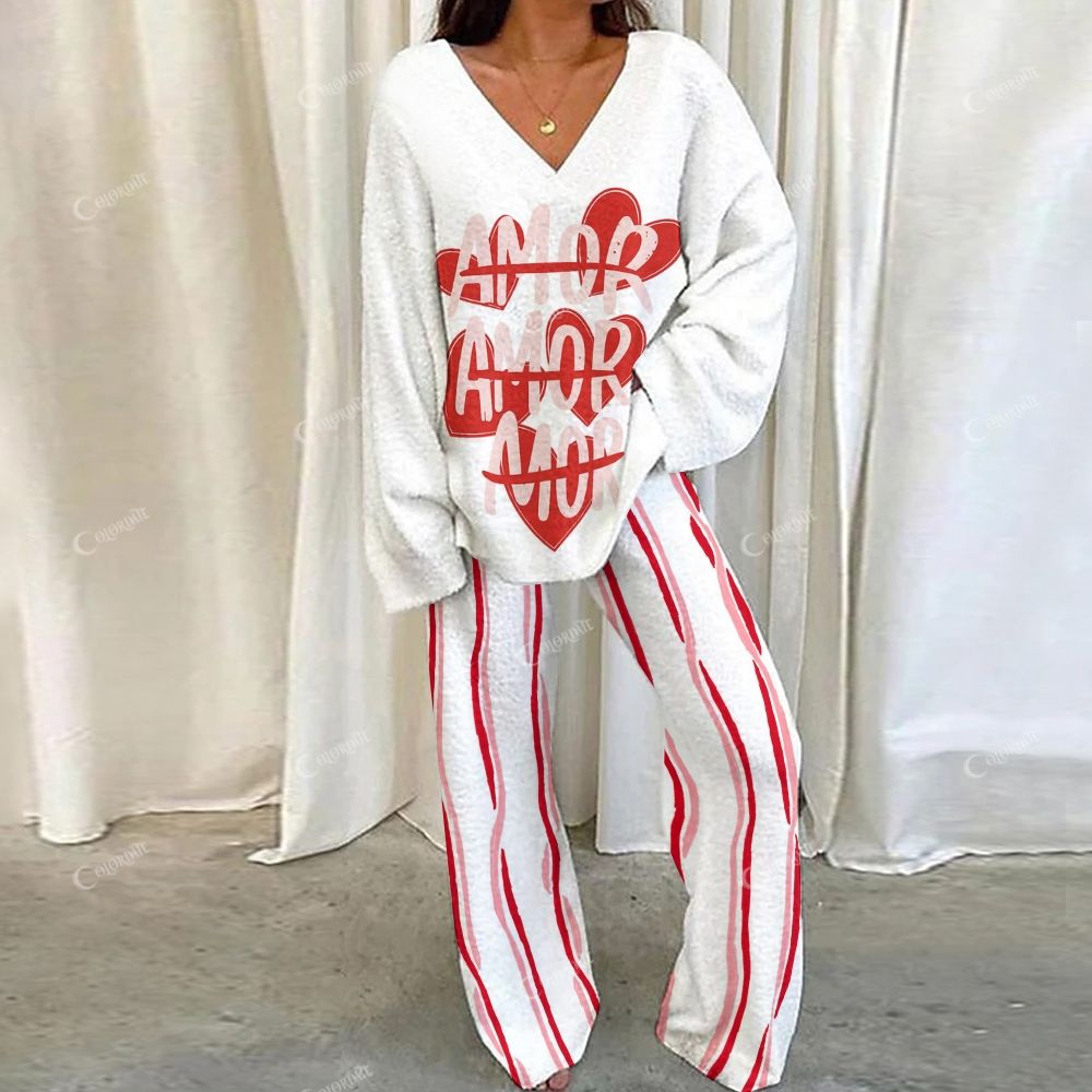 Red "AMOR" Heart Pattern Loungewear Set For Women