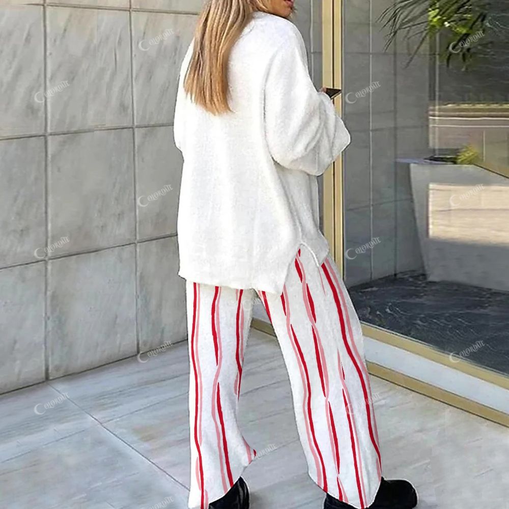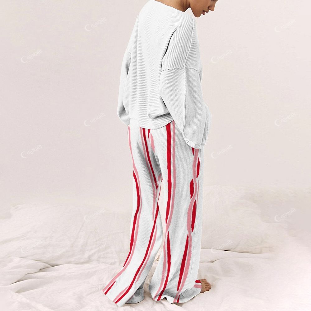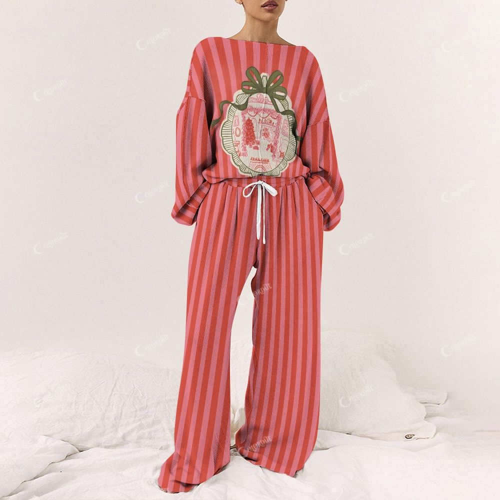 Women's Christmas Horizontal Stripes Long Sleeve Suit