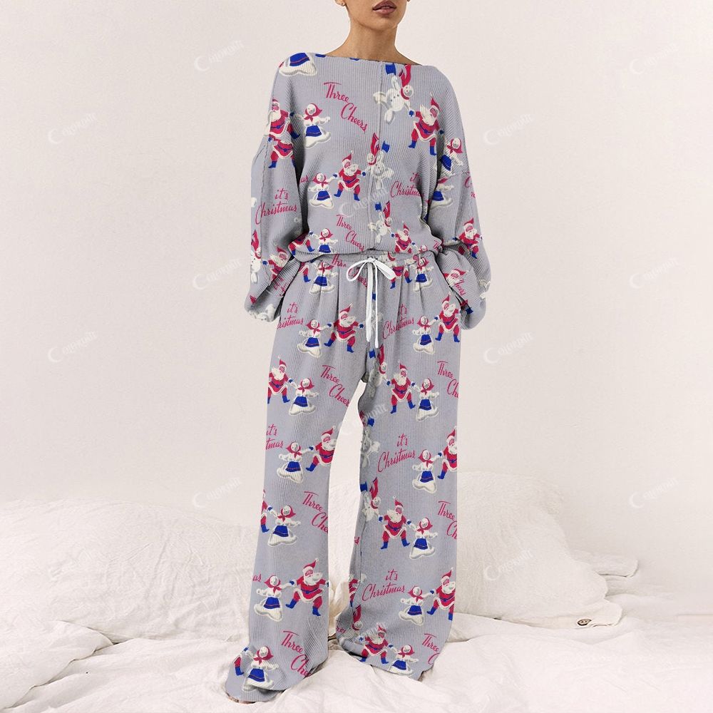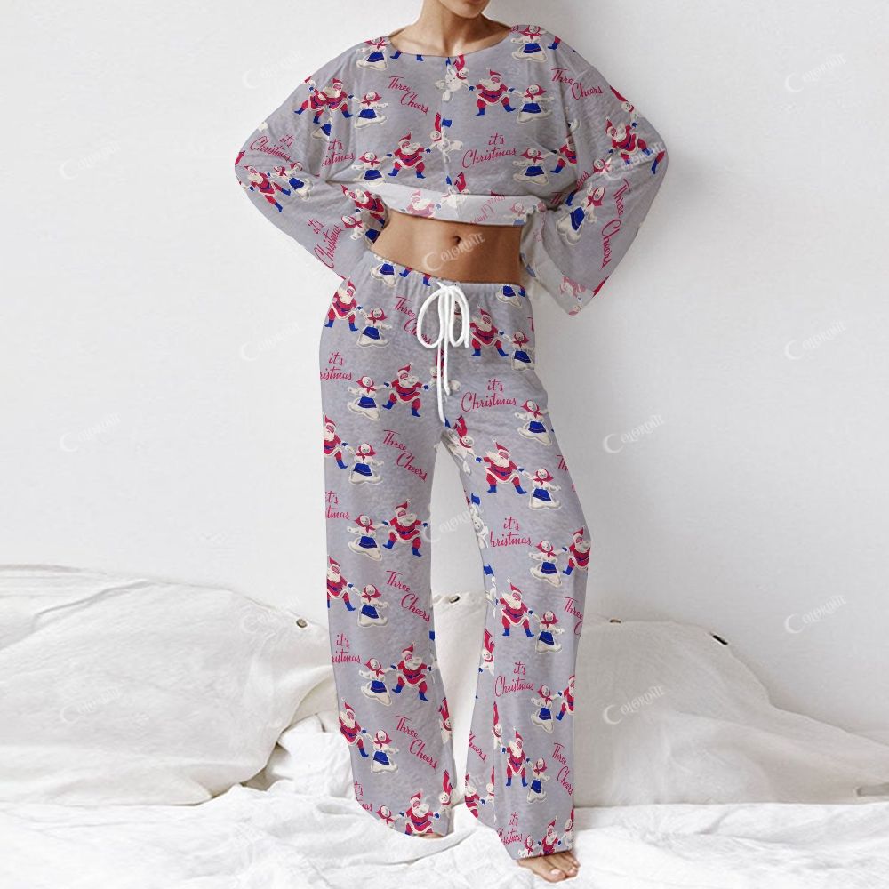 Colordate Women's Dancing Santa Claus Print Long Sleeve Cotton Homewear Set
