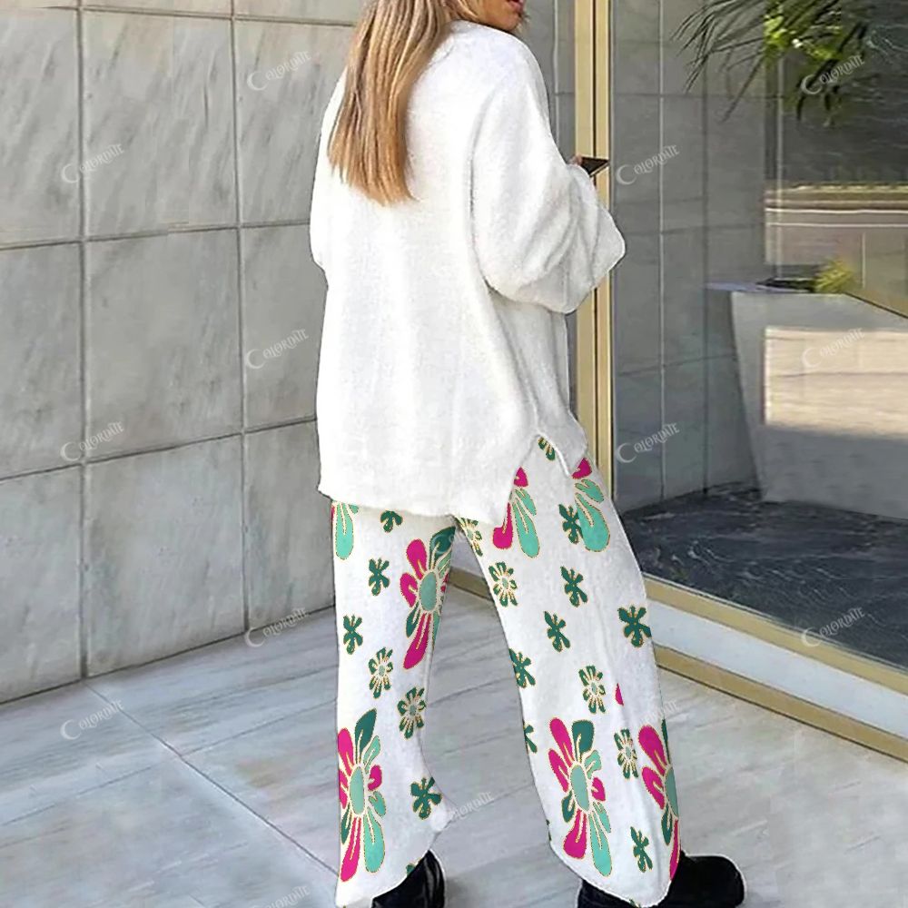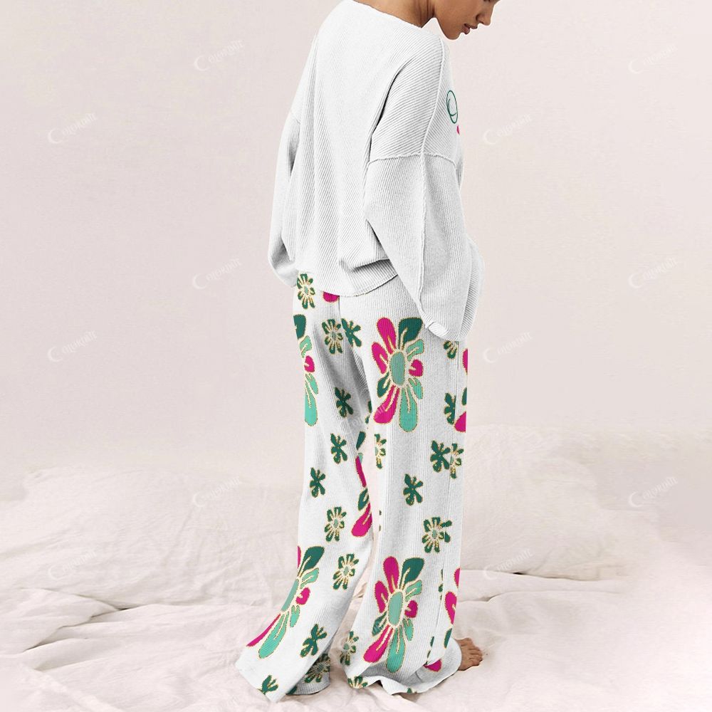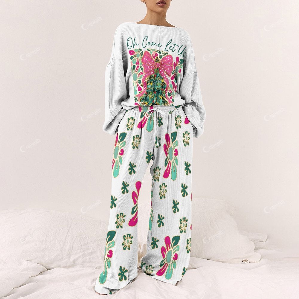 Colordate Christmas Trees And Floral Prints Loungewear Set For Women