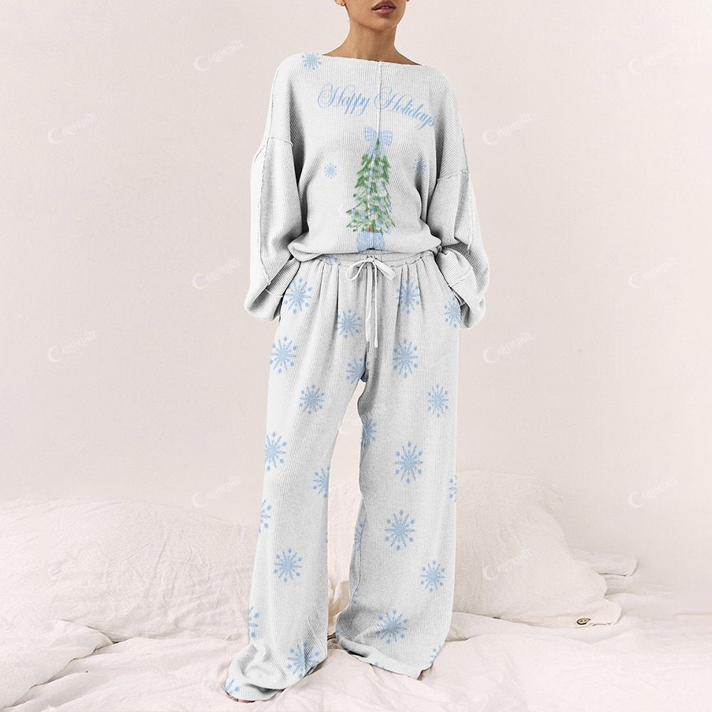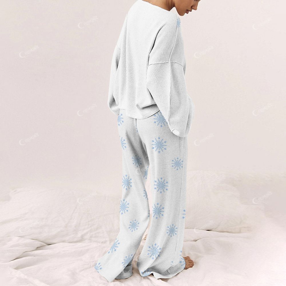 Colordate Women's Snowflakes And Christmas Trees Print Long Sleeve Pajama Set