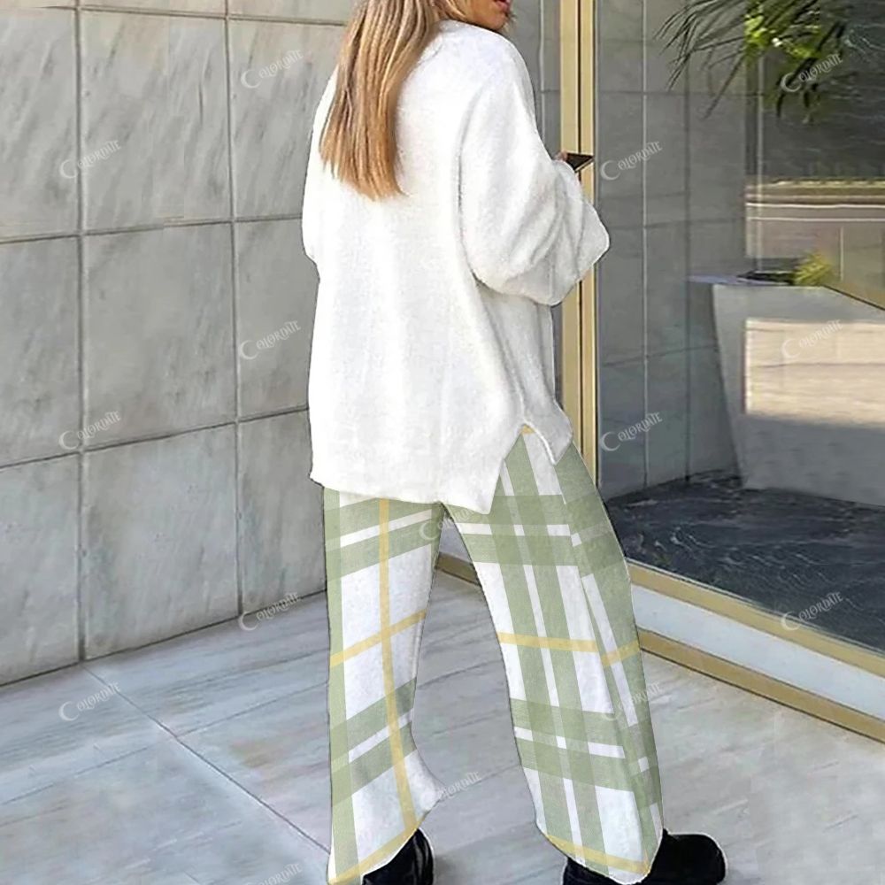 Cartoon Pattern and Green Plaid Loungewear Set For Women