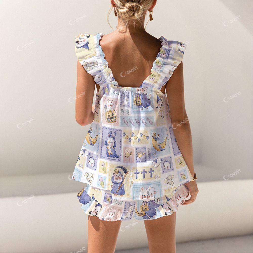 Colordate Cute Ghost Print Short Tank Top Shorts Pajama Set